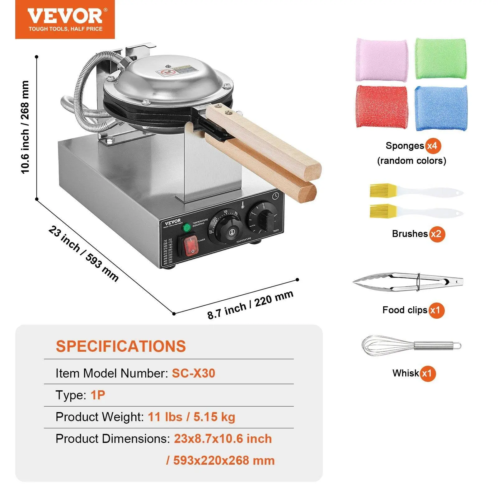 5. VEVOR Commercial Bubble Waffle Maker Egg Pancake Baker Machine 1400W Non-Stick