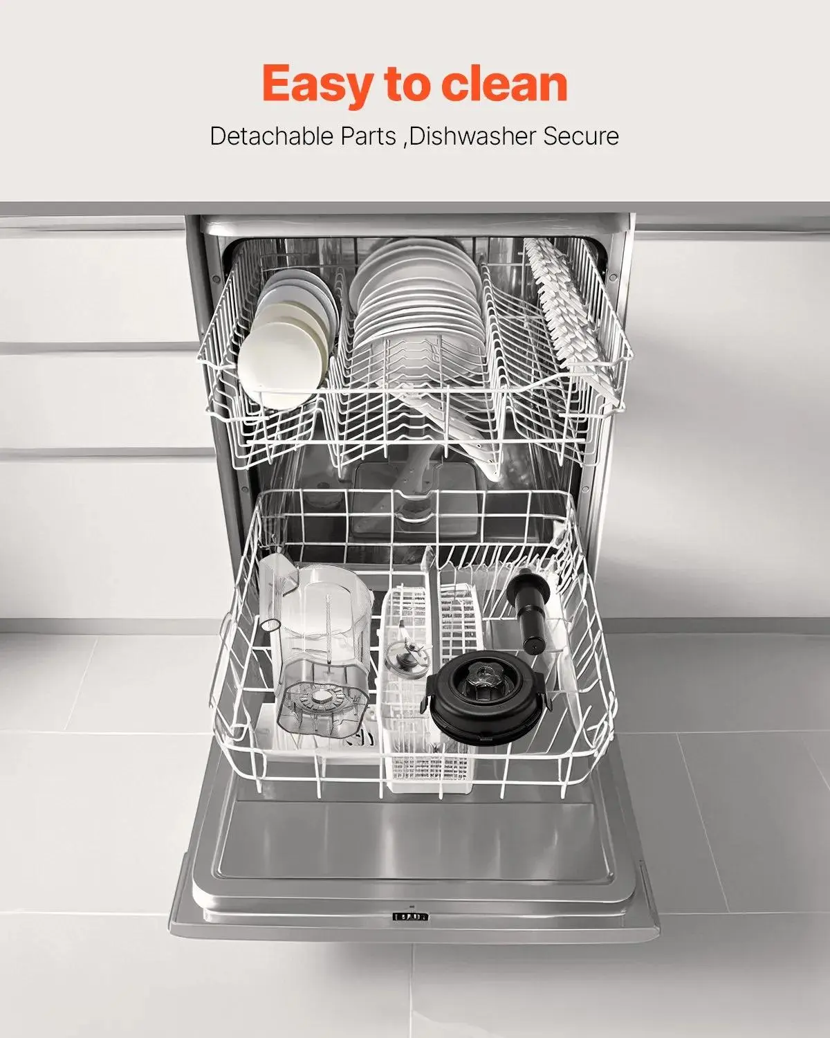 Cleaning is hassle-free. Add a few drops of detergent and warm water, and the blender self-cleans in just 30 to 60 seconds. The detachable jar and tamper are dishwasher-safe for added convenience.