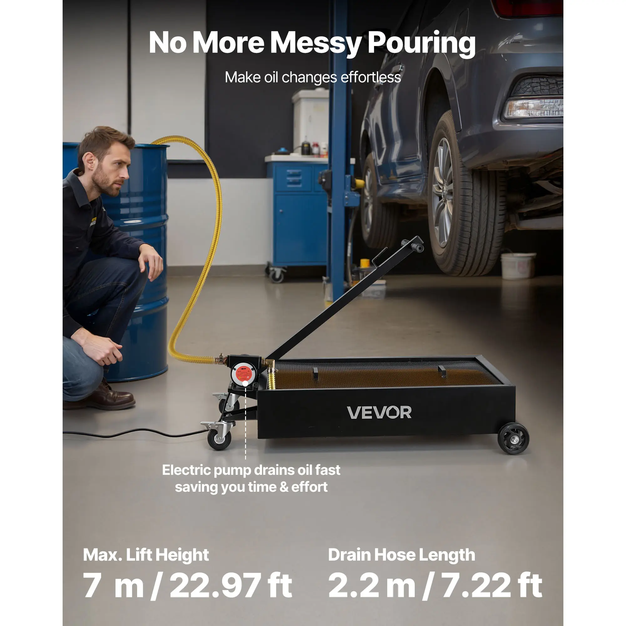 • Efficient Oil Draining: This low profile oil drain pan uses a 12V pump with a 7 m lift, letting you drain waste oil straight into tanks. Say goodbye to messy pouring and enjoy faster, cleaner oil changes
