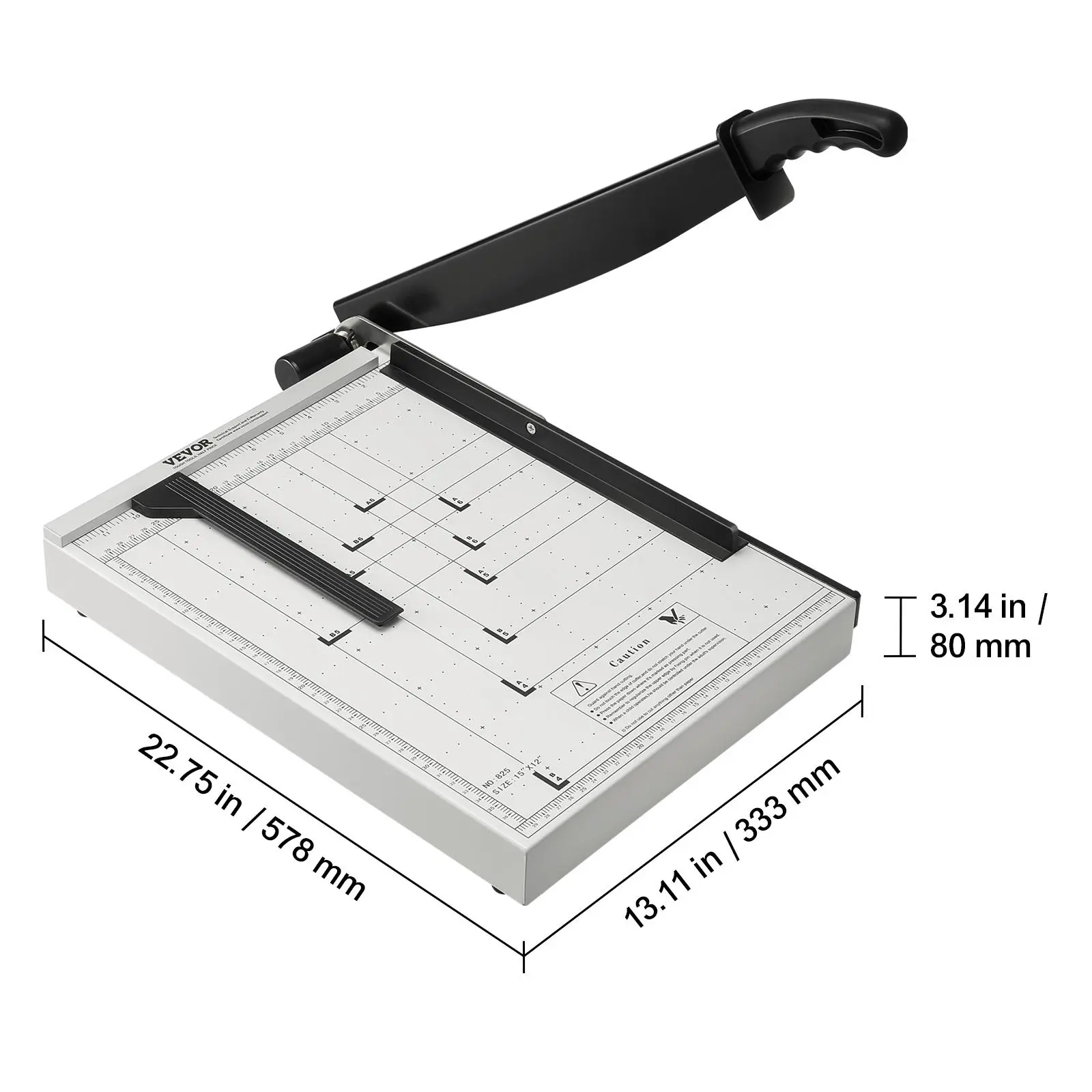 • Easy and Effective: VEVOR paper cutter is designed for effortless precision. With an alignment ruler and a convenient paper clamp, it's a breeze to use. The ergonomic handle ensures a comfortable grip, making it easy to align papers of all sizes.