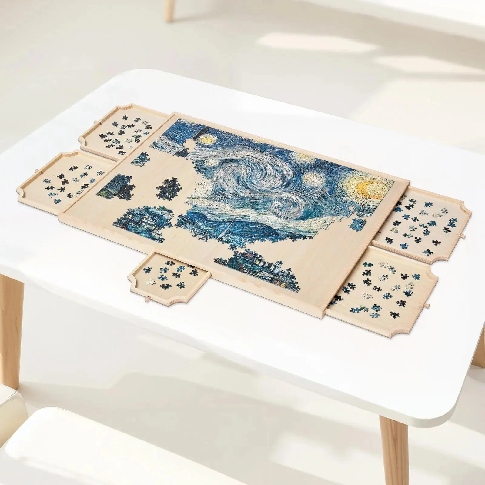 ·Made from natural pine wood, the puzzle board is sturdy. It includes 4 large sliding drawers and 1 small drawer for convenient storage. The smooth surface makes it easy to move puzzle pieces.