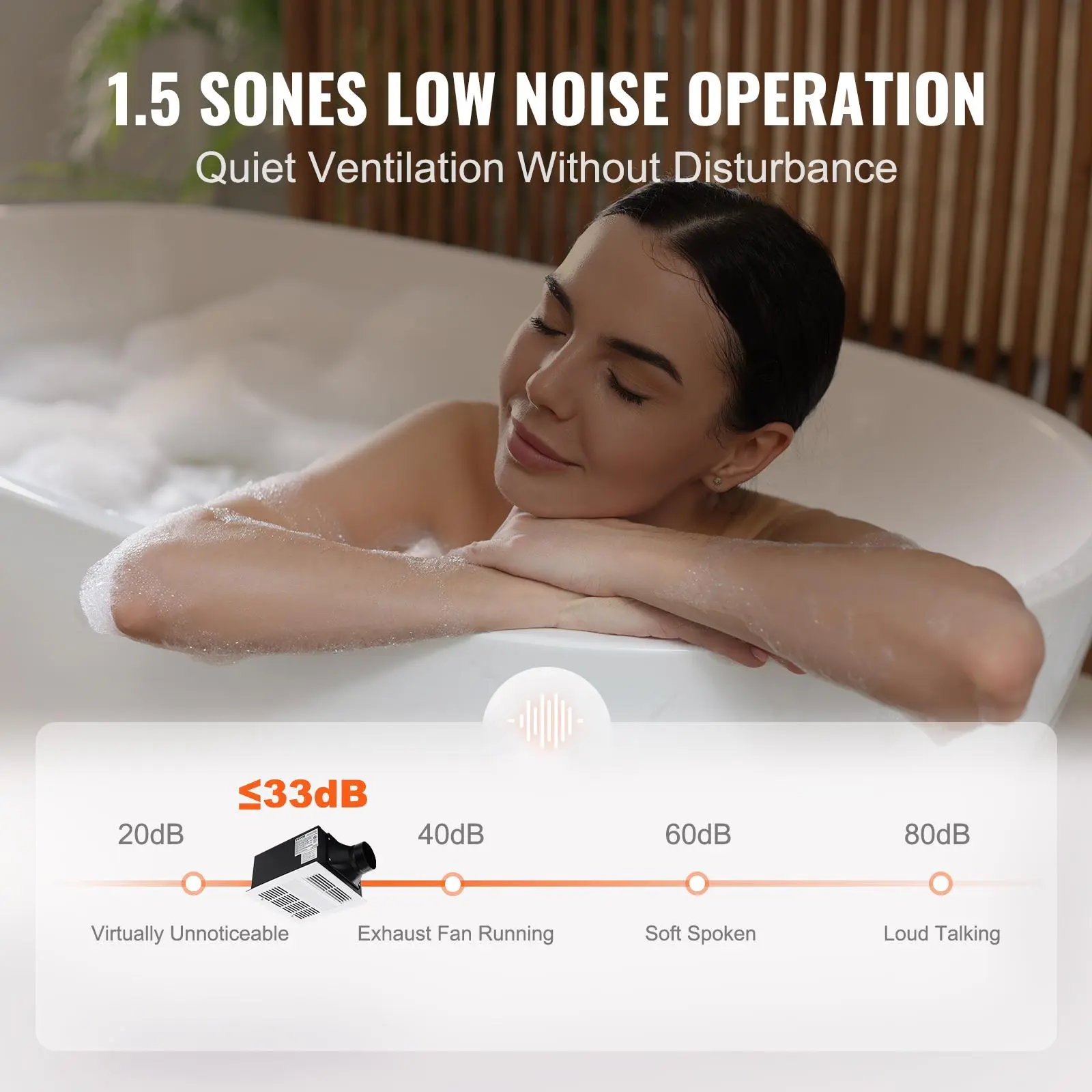 ·Quiet and Efficient (1.5 Sones, 110CFM): Featuring a quiet airflow design and a high-quality motor, this fan operates at a noise level of ≤33 decibels (1.5 sones) while effectively ventilating spaces up to 110 sq ft. It offers adjustable fan speeds and programmable timers for energy efficiency.