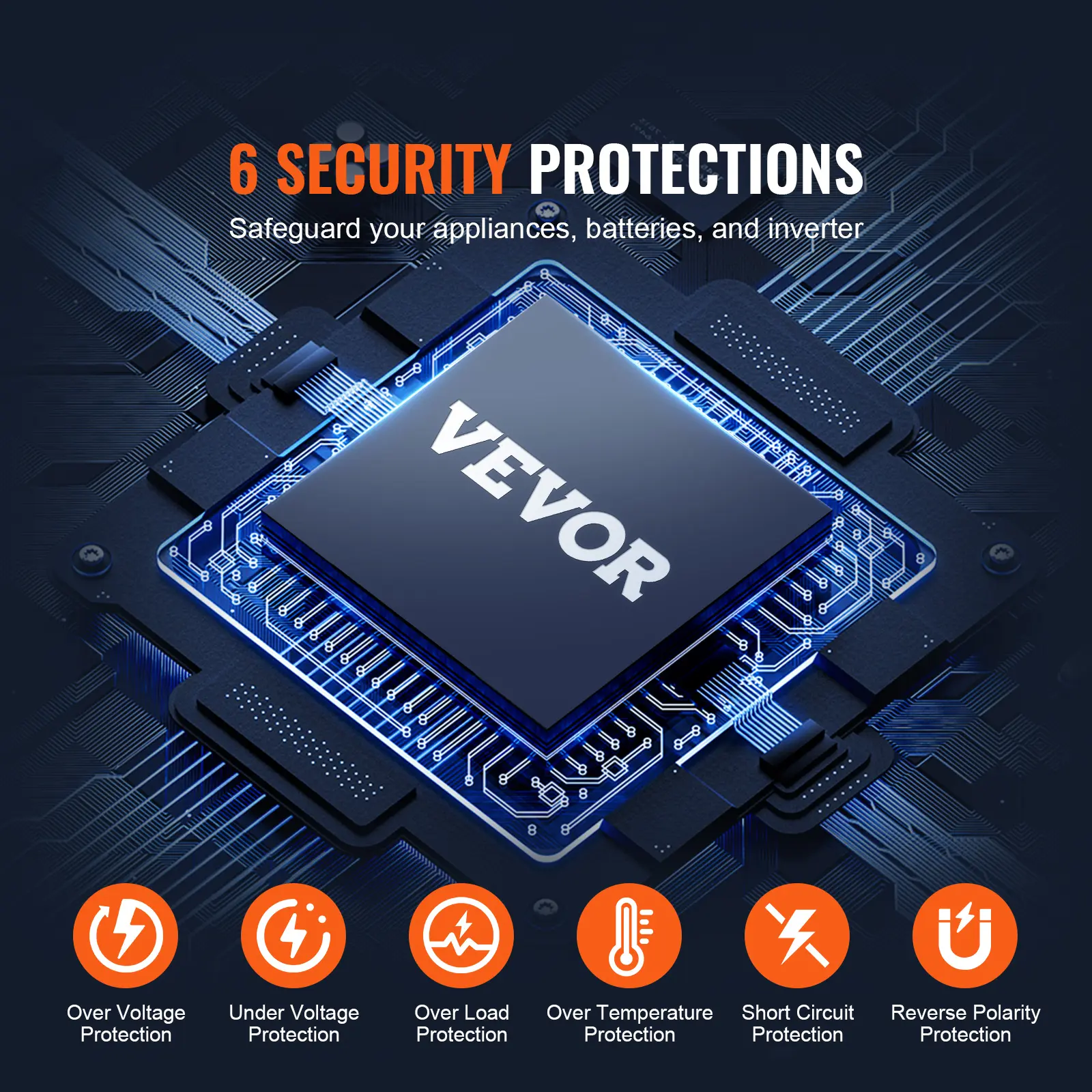 โข Certified Security, Six Protections: CE/FCC certified for your peace of mind, our sine wave power inverter boasts 6-layer protections, including over voltage protection, under voltage protection, over load protection, over temperature protection, short circuit protection, and reverse polarity protection. Plus, equipped with 100% pure copper cables, our inverter minimizes power conversion loss, ensuring your devices stay powered up efficiently and safely.