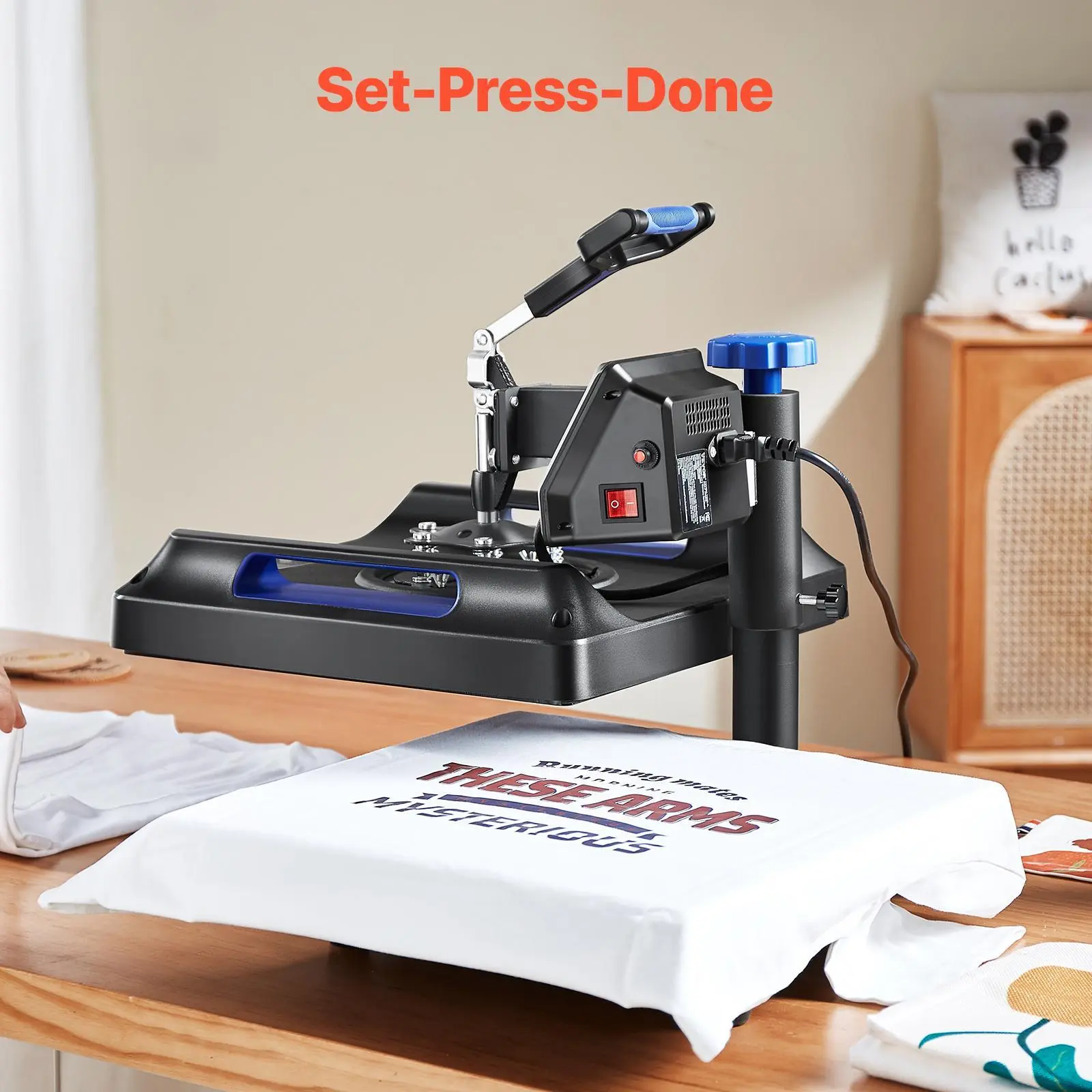 • 360° Swing Away Design: The swing-away arm makes the pressure be applied directly and evenly on the sublimation machine, improving the transfer quality. Meanwhile, it allows the heating element to move to the side, reducing the chance of accidental contact