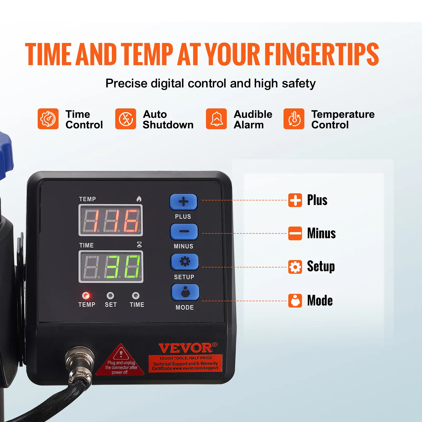 • 【DUAL-TUBE HEATING】- Unlike ordinary single tube heating, our heat press 15x15 adopts the latest double-tube heating technology. That makes the temperature difference is only about 5 ℃ between the center and the edge. But the old-fashioned heating tube is more than 10 ℃.