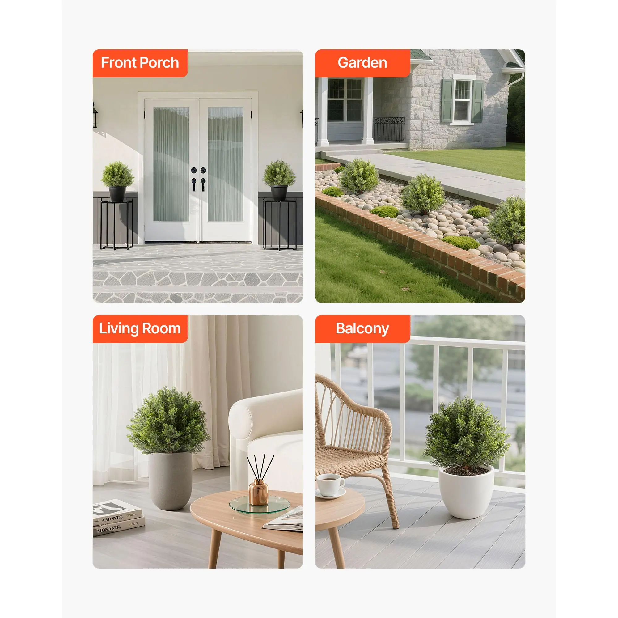 • Versatile Decoration: Suitable for front porches, gardens, balconies, or living rooms. These fake trees add charm to weddings, events, and commercial spaces, and make a thoughtful gift for housewarmings or holidays