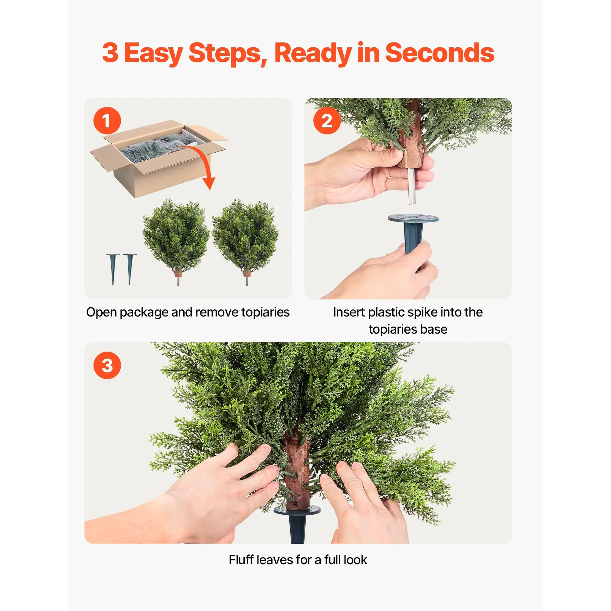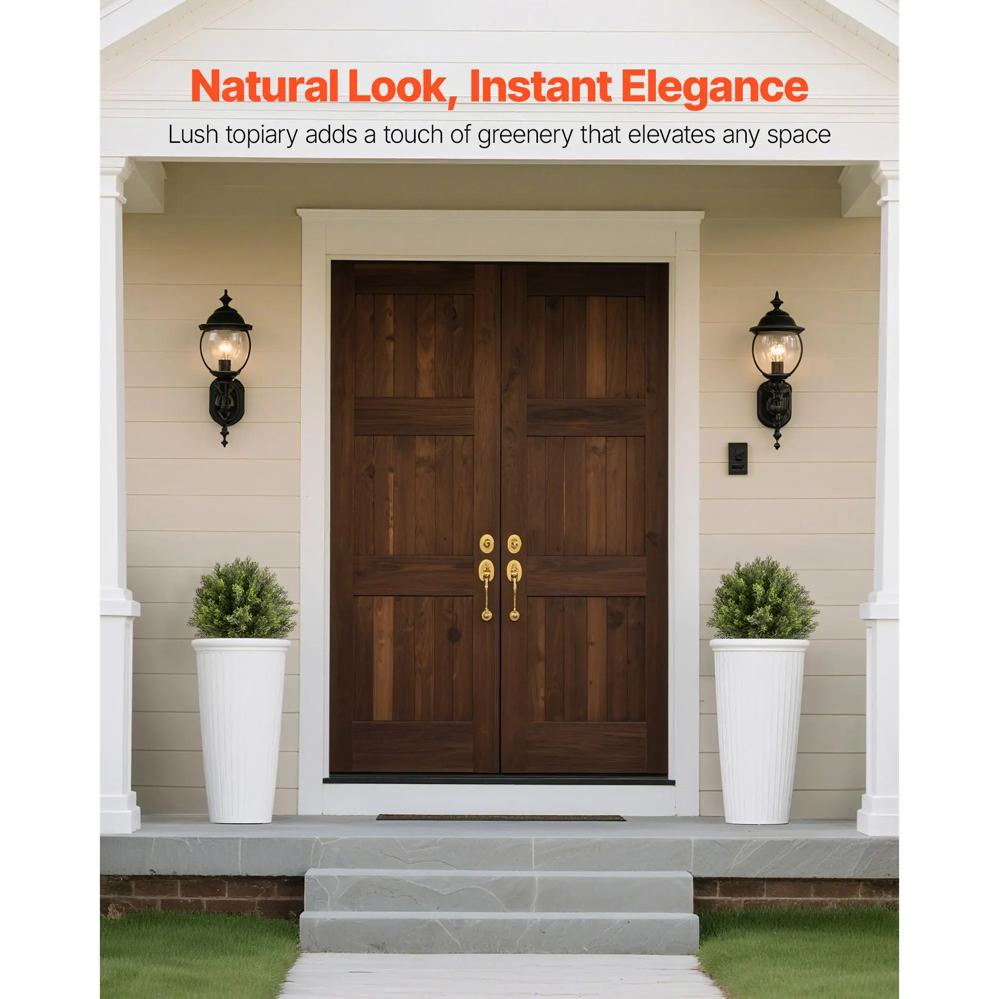 • Easy to Assemble: The simple design allows for quick setup—connect the two sections, adjust the leaves, and place them in your desired spot. No tools required, ready to enhance your space in minutes with front door plants or patio accents