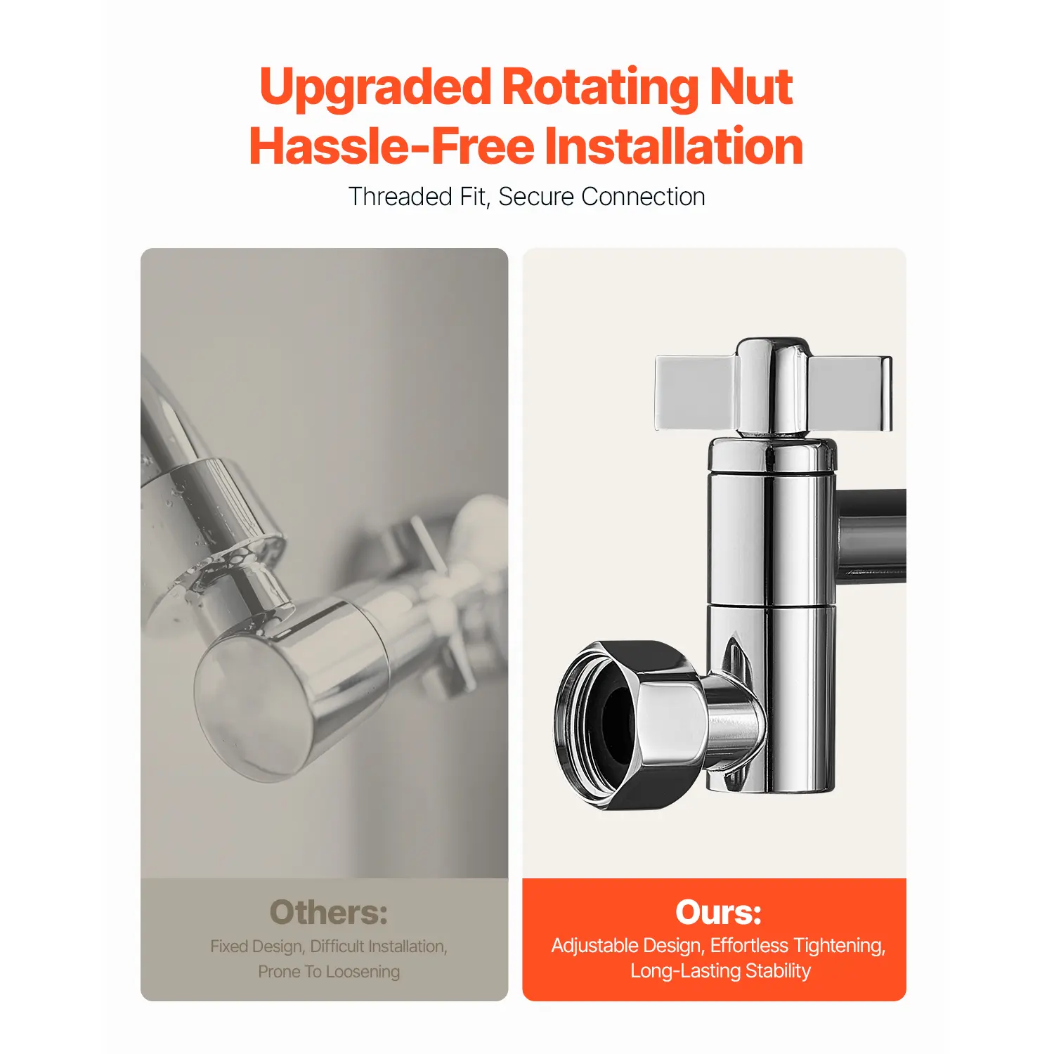 • Easy-to-Install Upgrade: With a rotating nut design, installing our shower head extension arm is a breeze! No need for complicated adjustments. Just rotate the nut to securely lock it in place. Enjoy peace of mind with every use