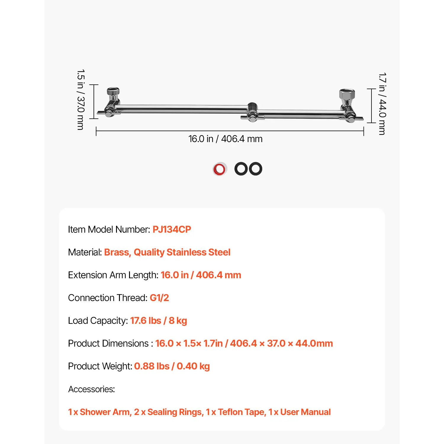 • 16-Inch Extended Reach: Our adjustable shower arm extender adds extra distance between your showerhead and wall, suitable for showerheads 12 inches or smaller. You can enjoy a spacious shower without having to bend down