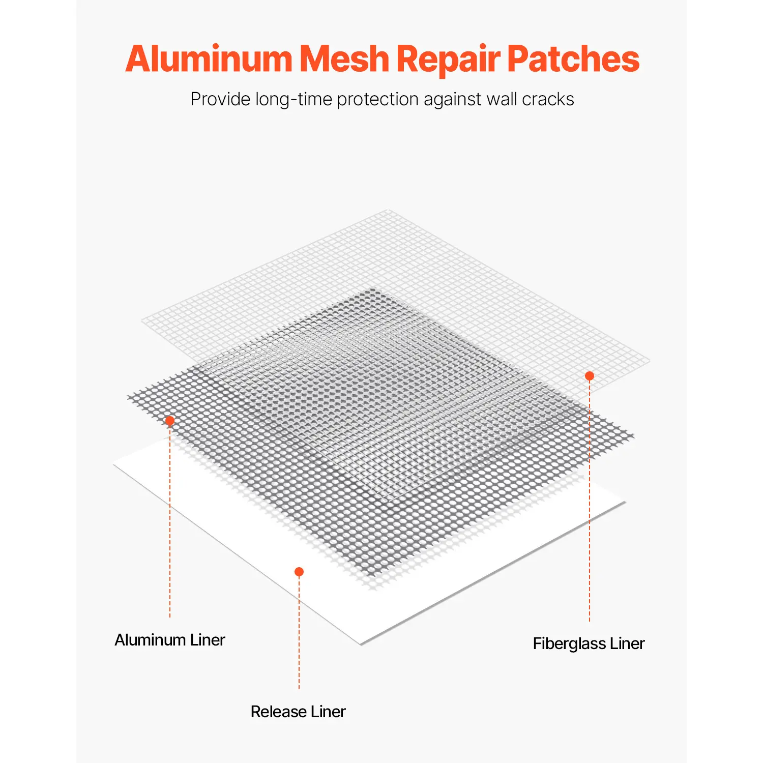 5. VEVOR 16PCS Drywall Repair Kit, 4/6/8-inch Aluminum Dry Wall Repair Patch Kit with 2 Scrapers & 2 Sandpapers, Self-Adhesive Drywall Patches for Nail Holes, Wall Cracks, Peeling, Scraping