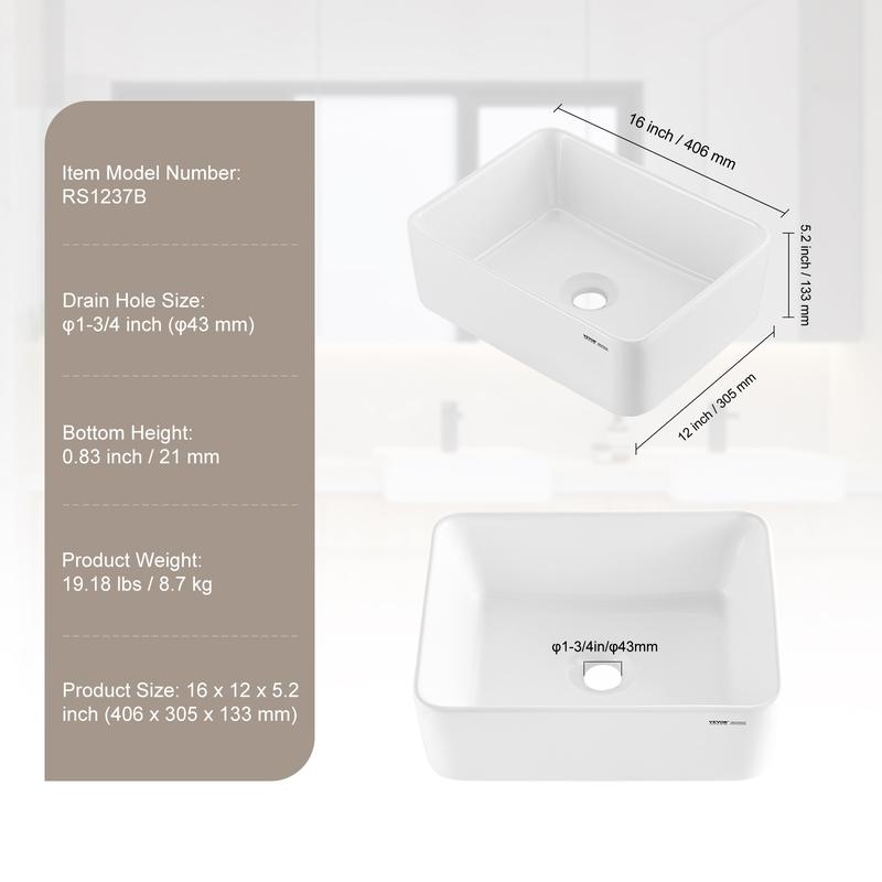 • Ceramic Material: Our vessel sink is made from thickened ceramic material, offering a robust and scratch-resistant surface that prevents damage and resists cracking. It withstands sudden temperature changes without issue. The smooth, glossy glaze is easy to clean and maintains its fresh appearance over time.