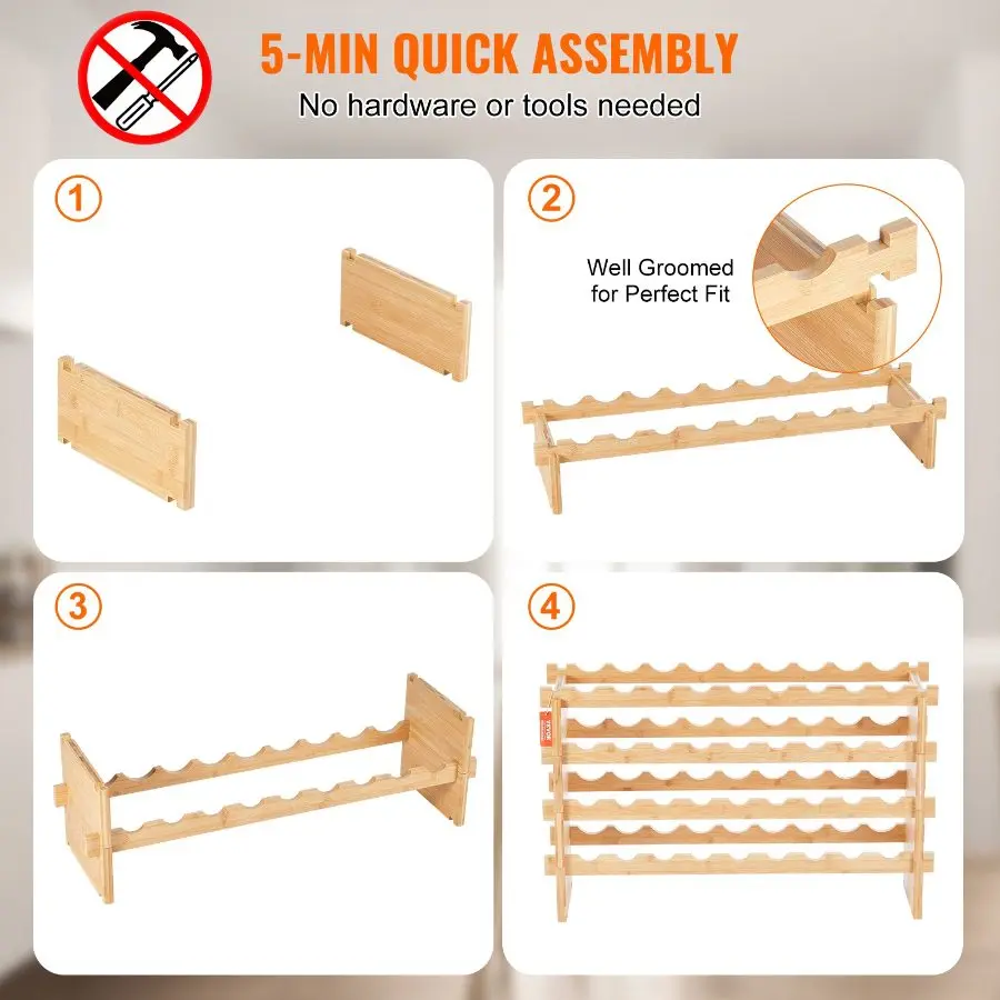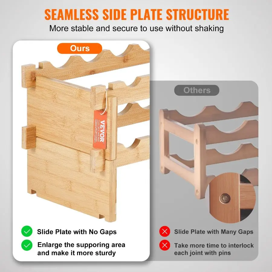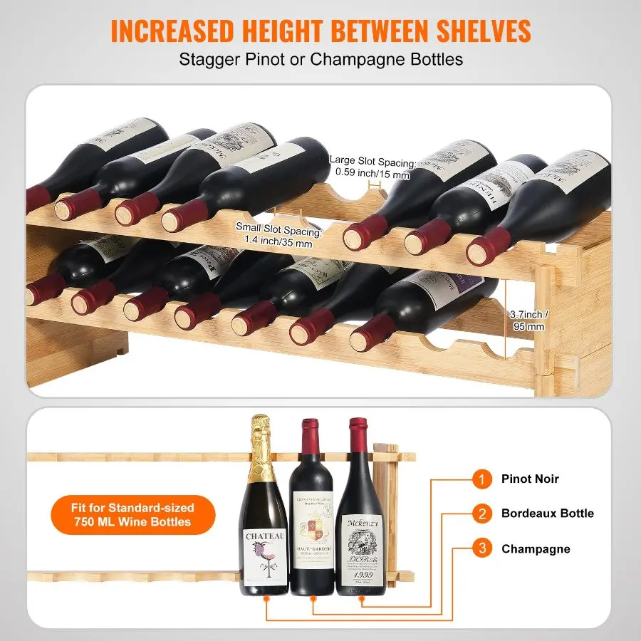 VEVOR 18 Bottle Stackable Modular Wine Rack, 2-Tier Solid Bamboo Wood Storage Racks, Floor Freestanding Wines Holder Display Shelf, Wobble-Free Shelves for Kitchen, Bar, and Cellar (Natural Color)VEVOR 72 Bottle Upgrade Modular Wine Rack, Continuously Store Pinot Bottles, 8-Tier Bamboo Wood Storage Rack, Floor Freestanding Wines Holder Display Shelf, Wobble-Free Shelves for Kitchen Bar Cellar
