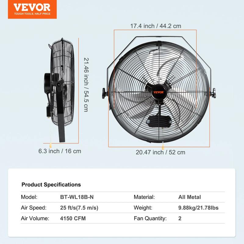 ·18'' Tilt Adjustment: The wall fan can be tilted vertically for optimum airflow. It features heavy-duty metal construction with aluminum blades for easy disassembly and cleaning. 🛠️