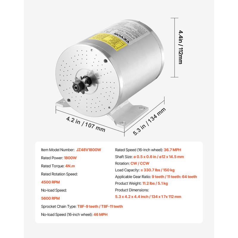 • Easy DIY Installation: Package includes: 1 x 48V 1800W Brushless Motor, 1 x Motor Controller, 1 x Twistgrip Throttle, 1 x Set of Assembly Hardware, and 1 x User Manual. This motor kit comes with detailed wiring diagram instruction, ideal for DIY enthusiasts and hobbyists looking to upgrade or build custom electric vehicles.
