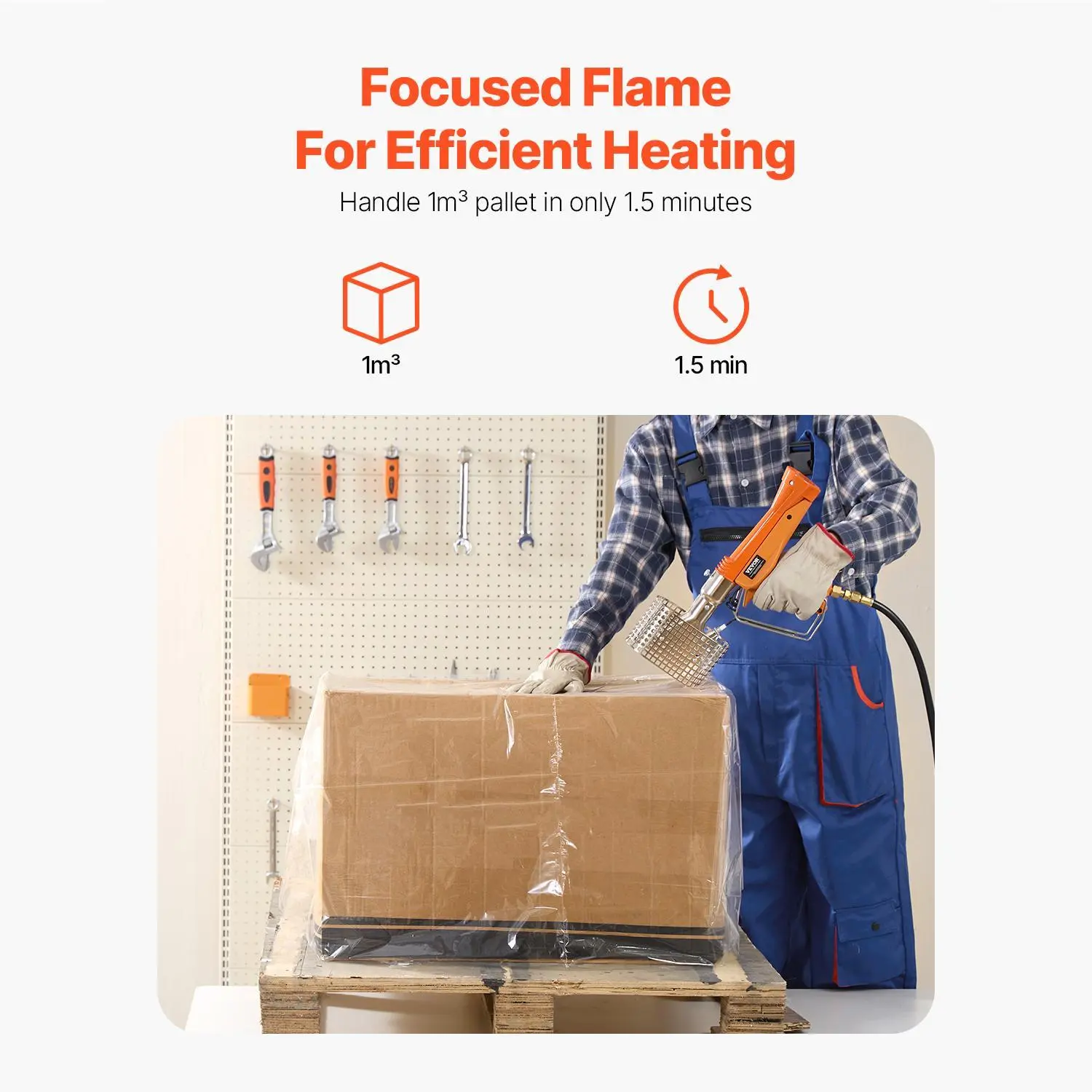• Efficient Heating Performance: This propane heat gun delivers a powerful 187,660 BTU output, heating 1 cubic meter pallet wrap in just about 1.5 minutes. Ideal for large-area shrink wrapping, the propane heat tool boosts efficiency.