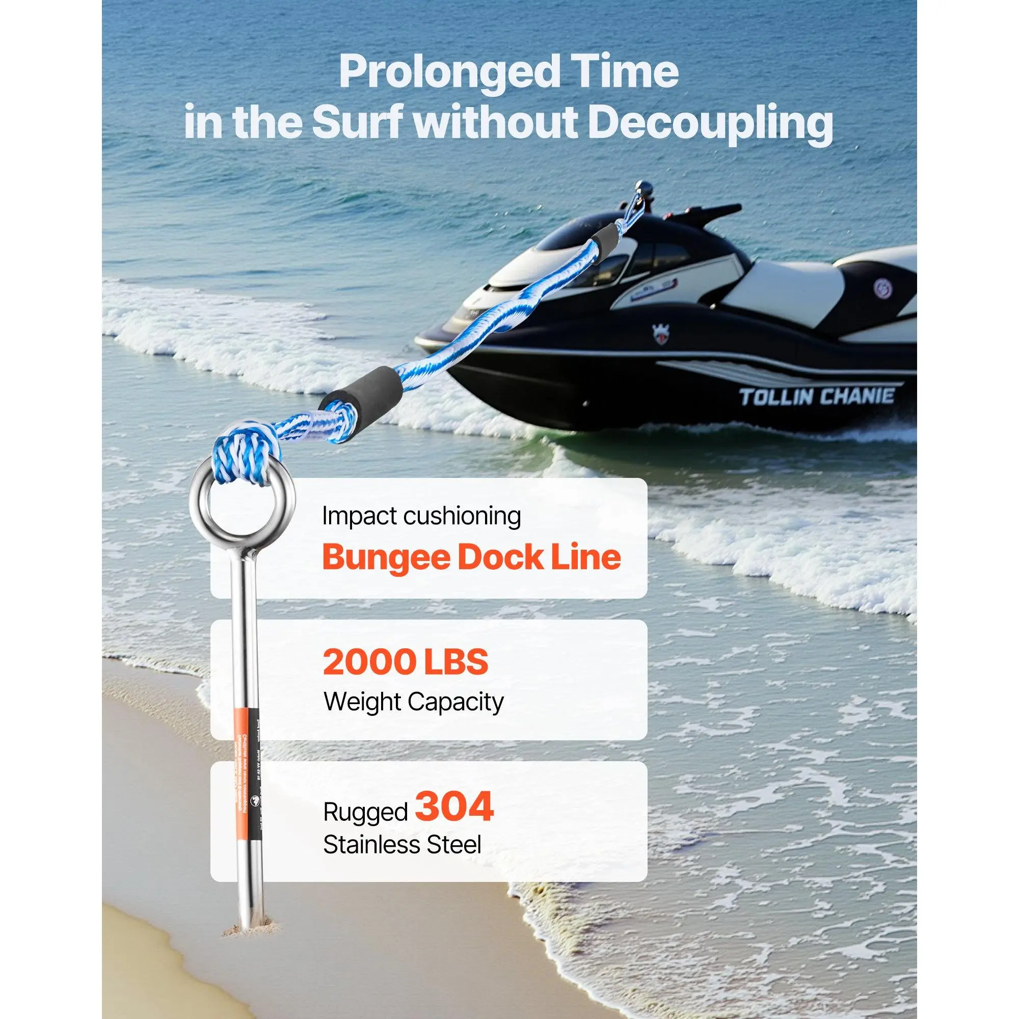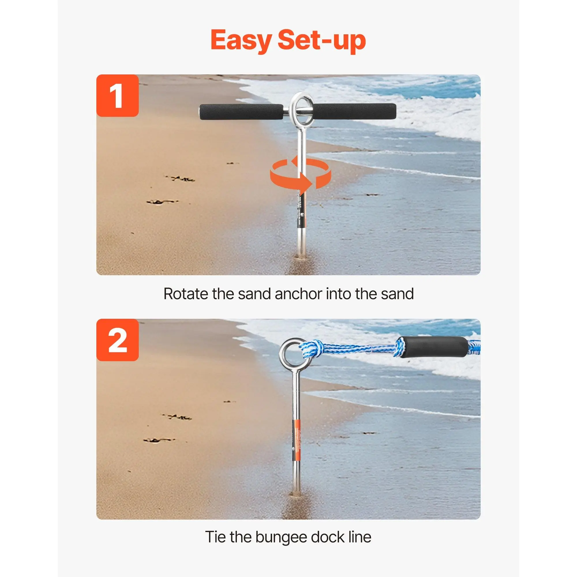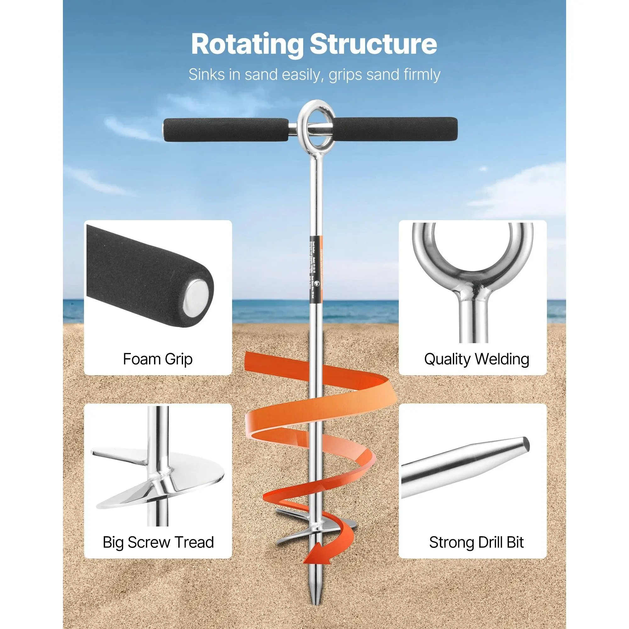No More Drifting: The 18 in sand anchor can securely anchor boats, floating docks, kayaks, and jet skis up to 2200 lbs and under 20 ft in length in shallow, deep waters, riverbanks, or sandbars, allowing you to enjoy summerHandle and Spiral Drill Design: The T-shaped handle with a soft foam grip helps twist the boat screw anchor into the sand.The spiral drill ensures a strong hold, and the detachable handle avoids the anchor looseningEasy to Operate: Secure your boat in minutes by twisting the beach anchor into the sand with the T-handle, removing the handle, and tying the elastic rope.The elastic rope minimizes sudden pulls and impacts, avoiding detachmentCan Be Used in Freshwater: Our 304 stainless steel shore anchor is durable and stronger than ordinary galvanized steel, making it ideal for long-term useEasy Storage and Organization: The detachable sandbar anchor saves space, and the storage bag avoids punctures that could cause injury or scratches to the boatVEVOR Sand Anchor, 18 in Stainless Steel Beach Anchor, Screw in Sand Boat Anchors with Spiral Blade, Shallow Water Boat Auger Anchors, for Securing Jet Ski PWC Pontoon Kayak on Beaches and Sandbars