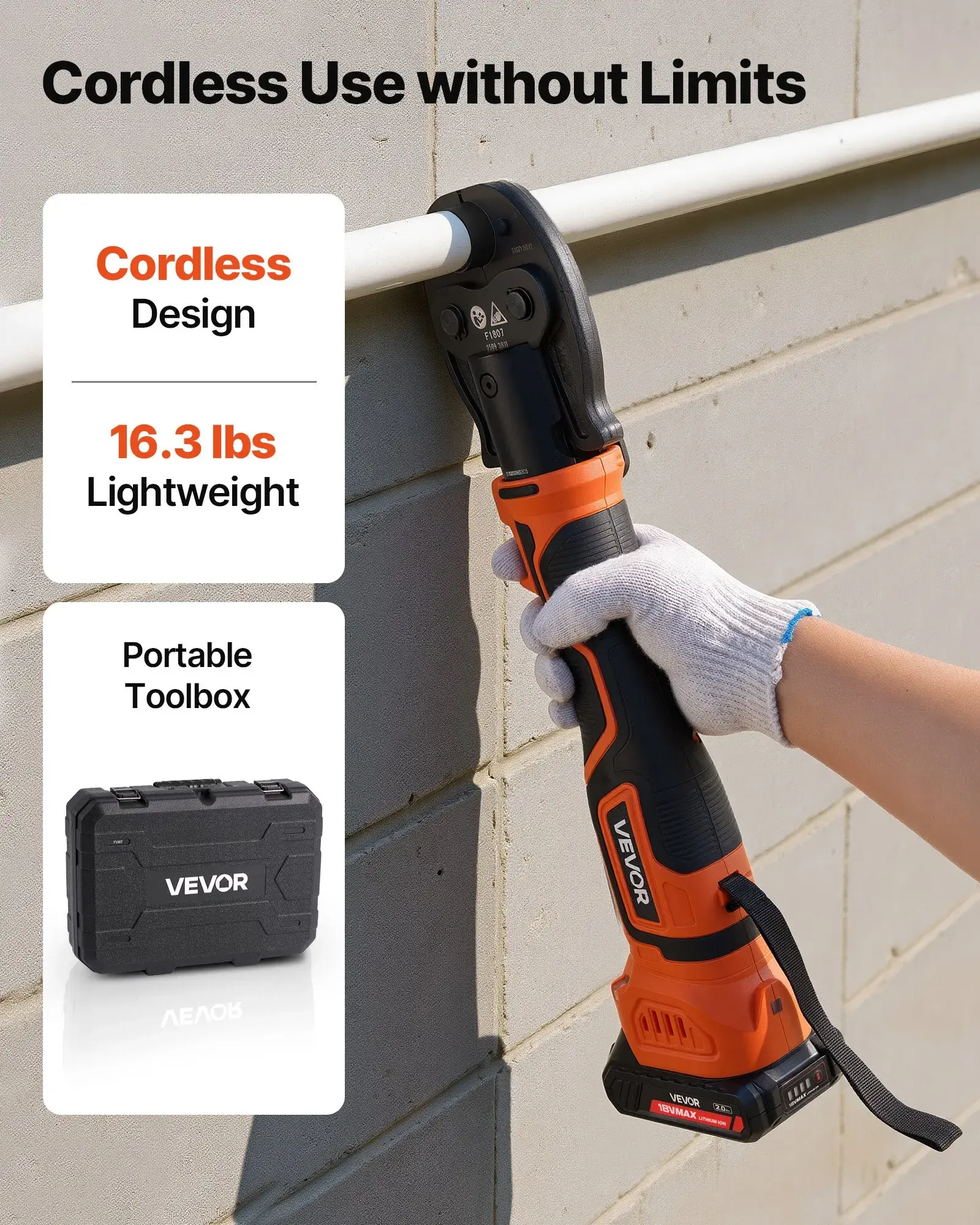 ·Powerful Crimping: Driven by a high-performance brushless motor, this electric PEX pipe press tool delivers 24 KN of force for efficient and precise crimps. Achieve smooth, leak-free, high-quality connections that improve work efficiency and reduce maintenance needs