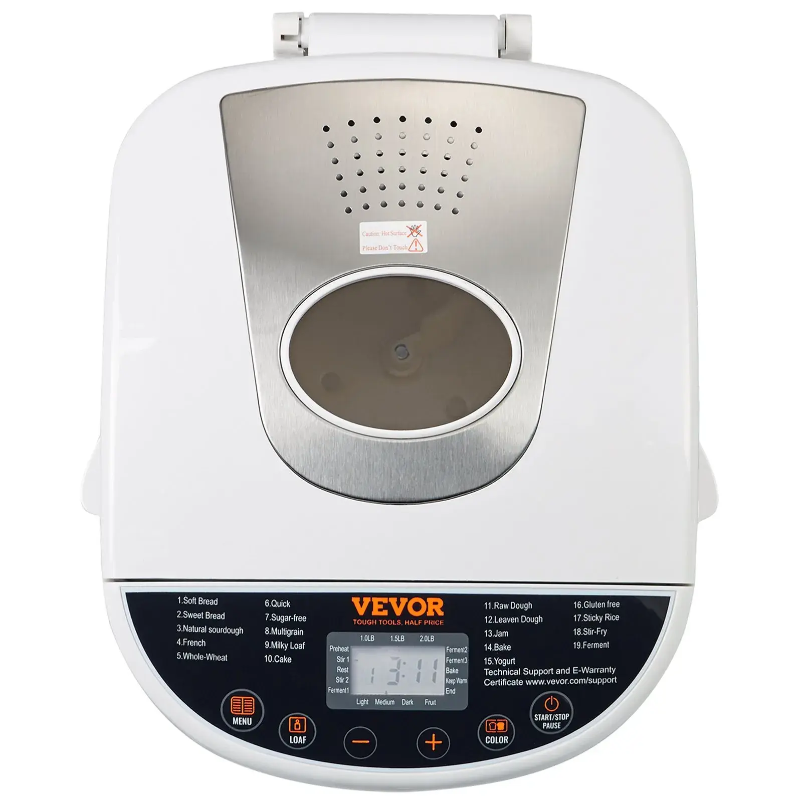 Conclusion 🌟The VEVOR Bread Maker is a multifunctional baking tool with 19 programs, 3 capacities, and 3 crust colors. It features a food-grade ceramic inner pot and a 15-hour smart reservation function. With an ingredient addition reminder, you can enjoy freshly baked and warm bread every time.