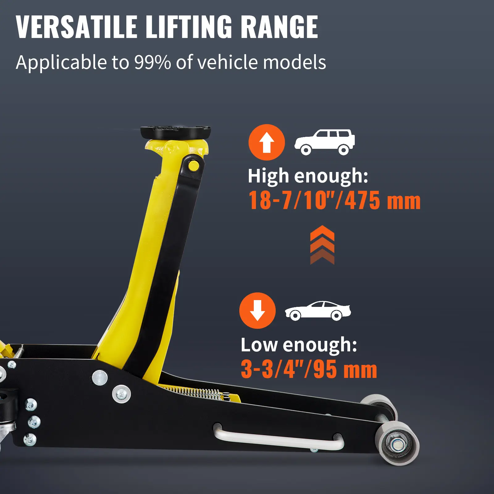 • Jack it Up: 2.5 tons/5500 lbs strong loading capacity, VEVOR's floor jack can help you raise your car for whatever reason. Ensures your lifting operation is reliably and securely. Replace a tire, change oil or maintain the brake, to take matters into your own hands!
