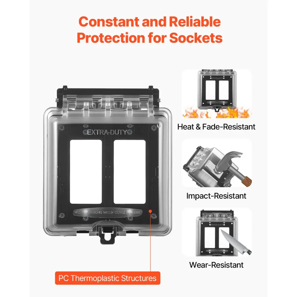 ·Tough & Durable Shell: Built to last, this cover is made from polycarbonate (PC), a super tough material that resists impacts and scratches. Even after tons of outdoor use, it won’t bend, fade, or crack—keeping your outlets protected all year round