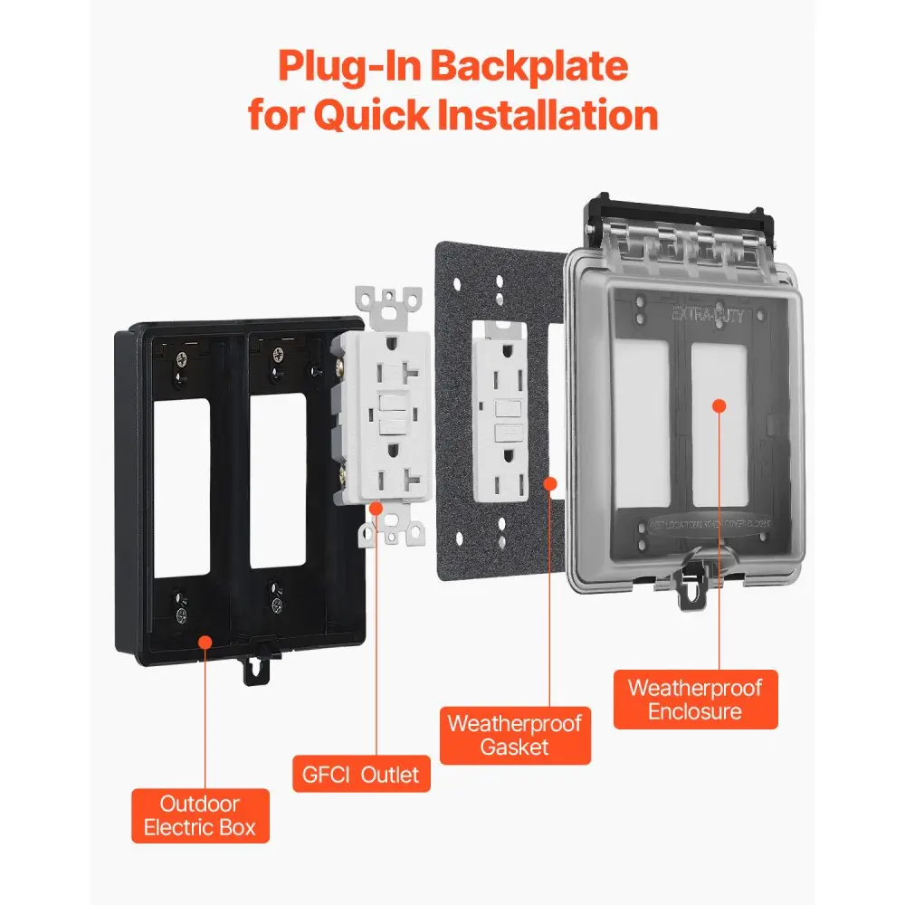·Easy to Install: With a snap-in backplate, setting up this weatherproof outlet cover is a breeze. Just pop it into place on any flat surface, and you’re good to go! Ideal for quick installations whenever you need to get your outdoor outlets covered fast