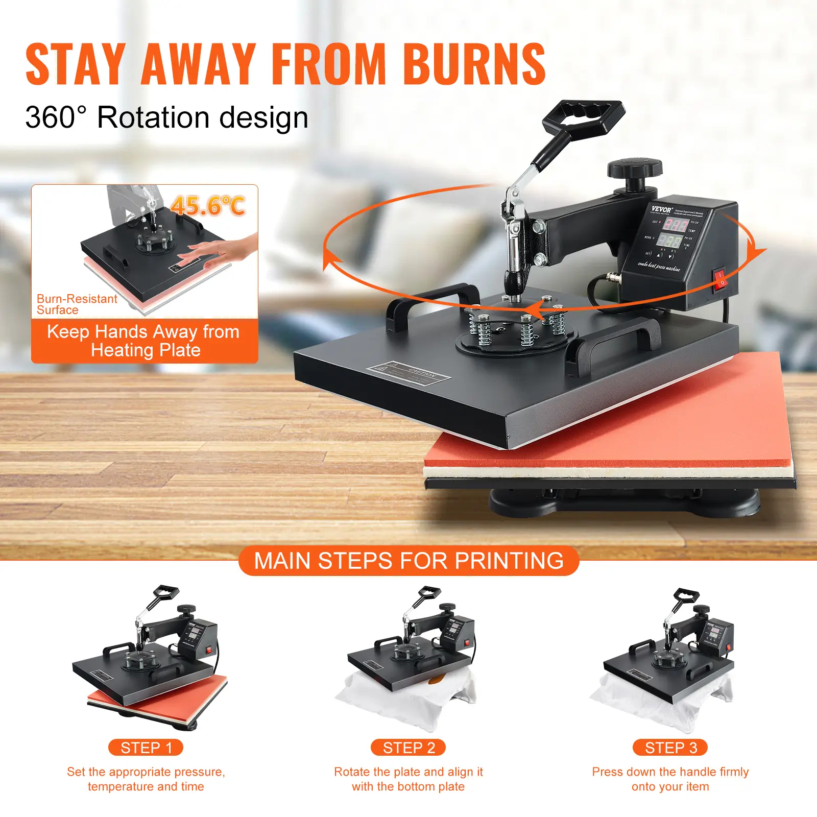 ·360° Rotation Arm: This swing-away machine can smoothly rotate 360 degrees. Outfitted non-slip rubber grip also offers you a comfortable user experience. Simply adjusting the mats tightly to fit the materials, offers great heating effects.