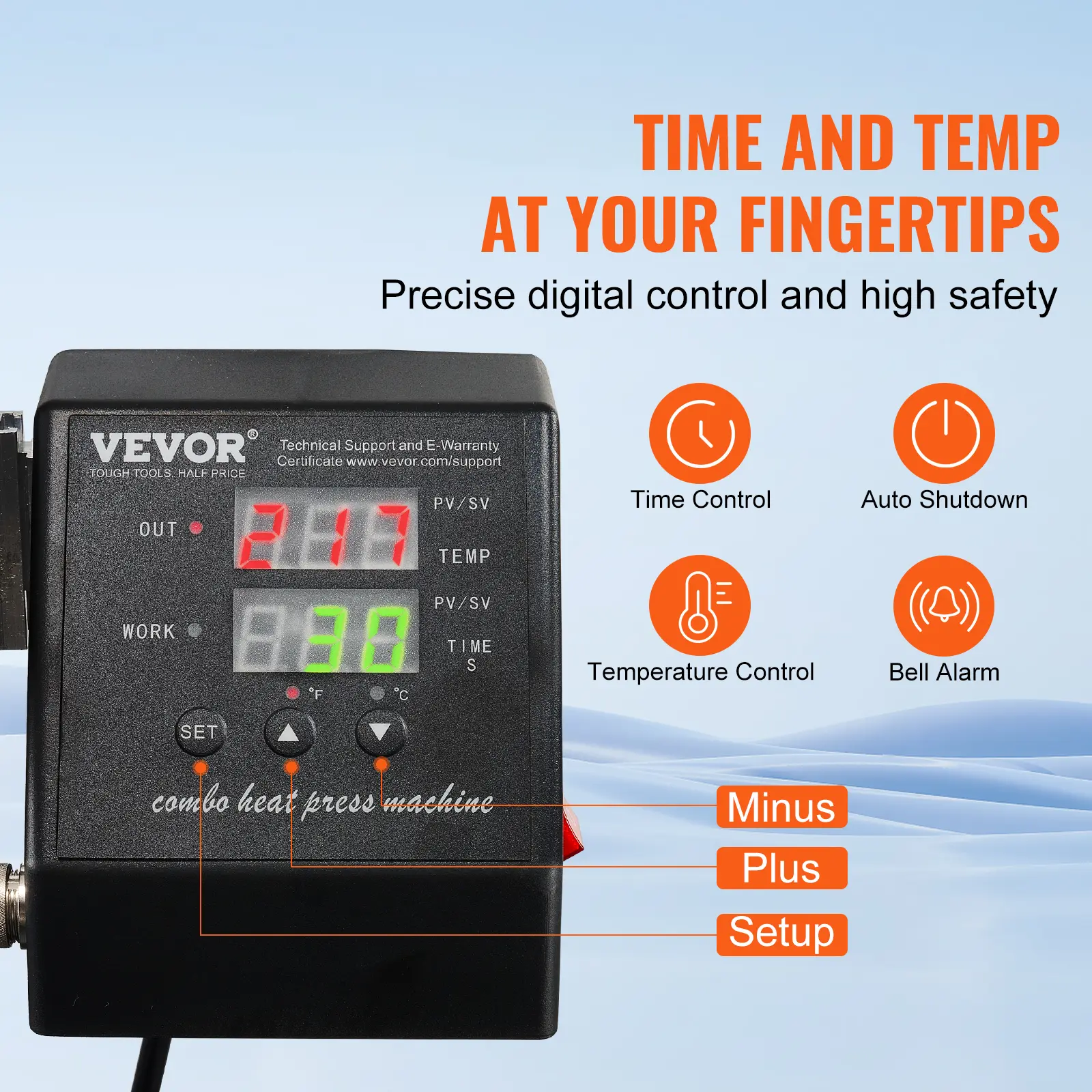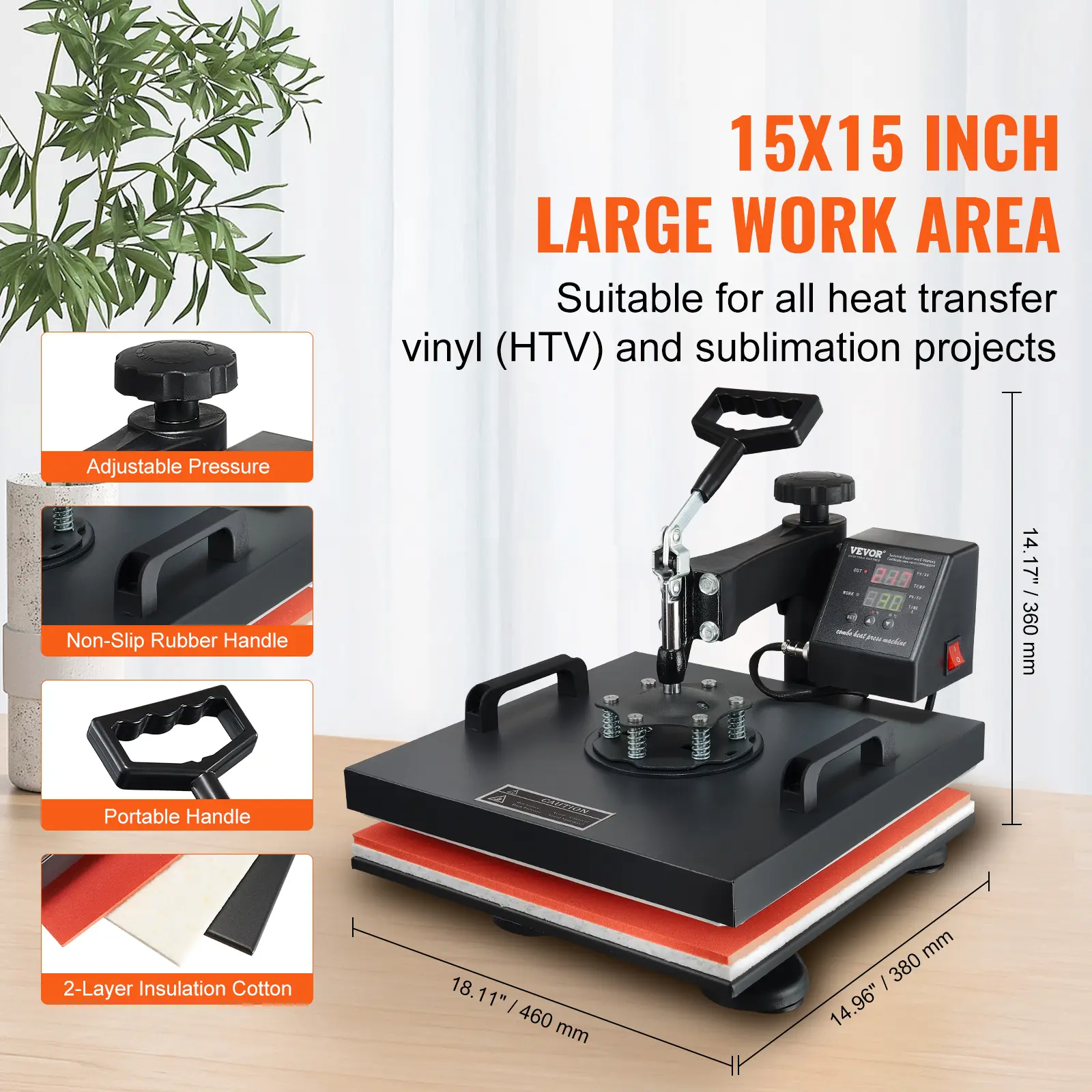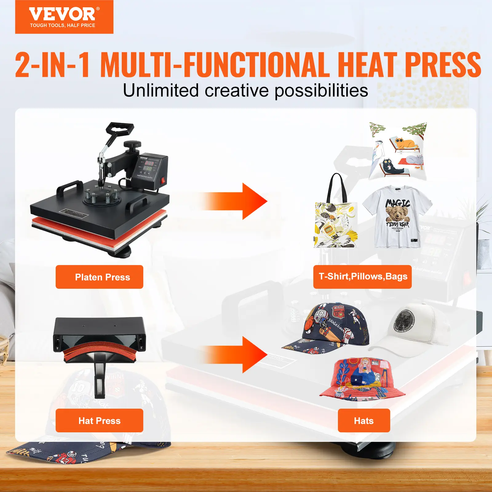 ·Easy to Use: VEVOR 2-in-1 sublimation machine is perfect for making gifts for friends and family. You can create T-shirts, pillows, bags, phone cases, caps, hats, etc. Quickly transfer colorful pictures and characters onto textiles such as cotton, cloth, HTV, ceramics, glasses, fabrics, flax, fiber, nylon, etc.