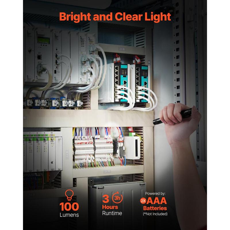 • Bright and Clear Illumination: With 100 lumens of light output, this pen light provides clear and bright illumination, ideal for focused lighting in close-up work areas. Powered by 2 standard AAA batteries (batteries not included), it provides several hours of reliable use