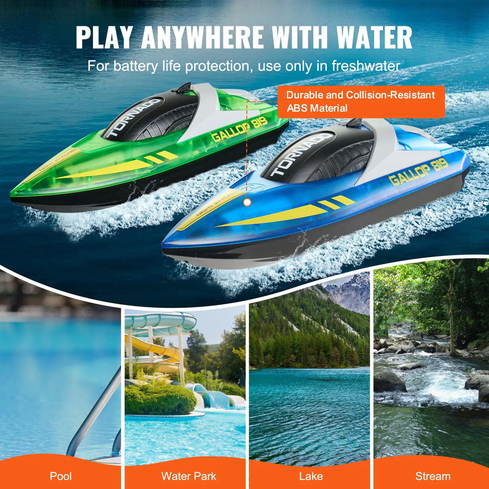 • Versatile Sailing: From backyard pools to lively water parks and scenic lakes, this remote controlled boat is ready for any environment. Its waterproof and impact-resistant design ensures care-free fun, no matter where you're playing.
