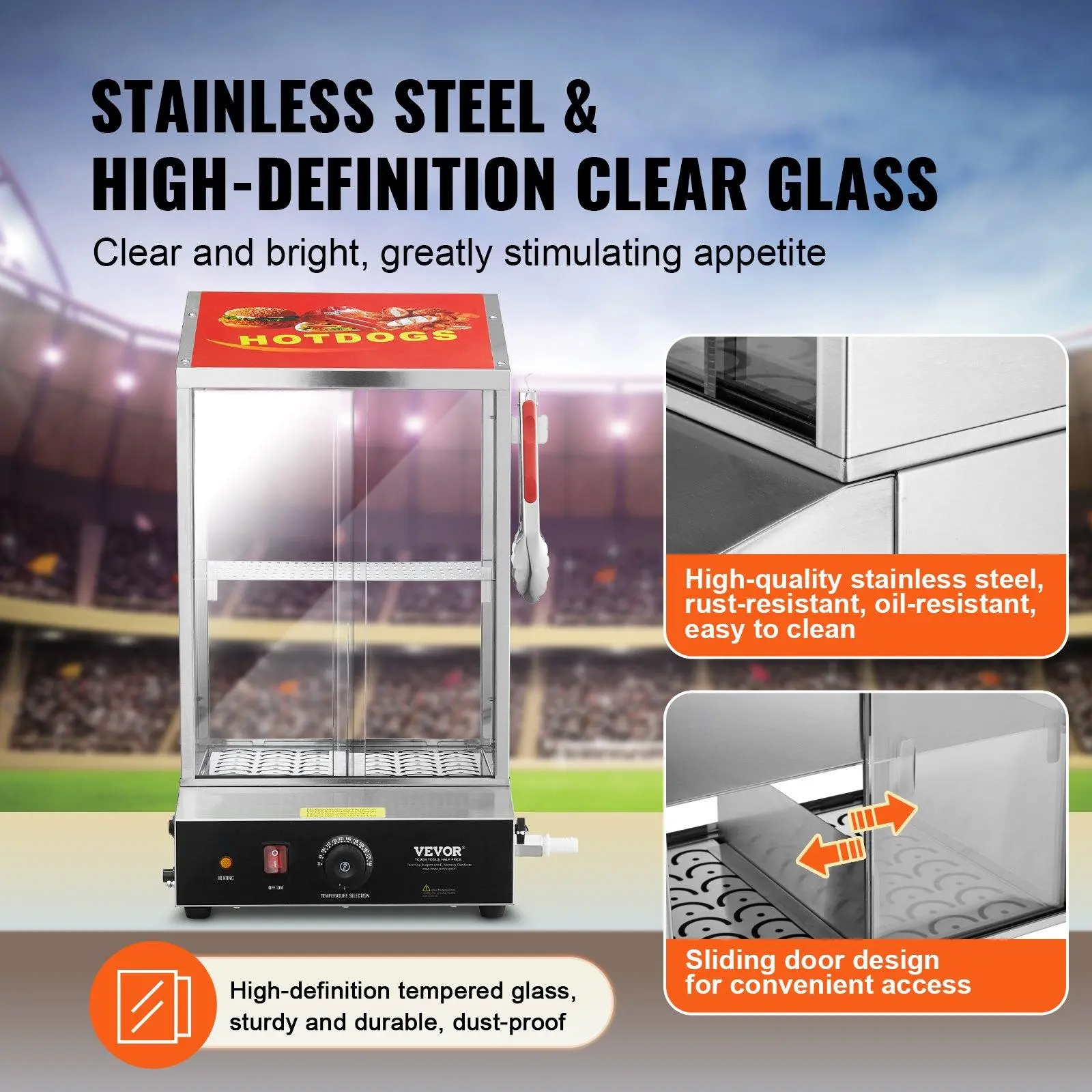 🌟 VEVOR Commercial Hot Dog Steamer 2-Tier Electric Bun Warmer 39QT Slide Doors 🌟