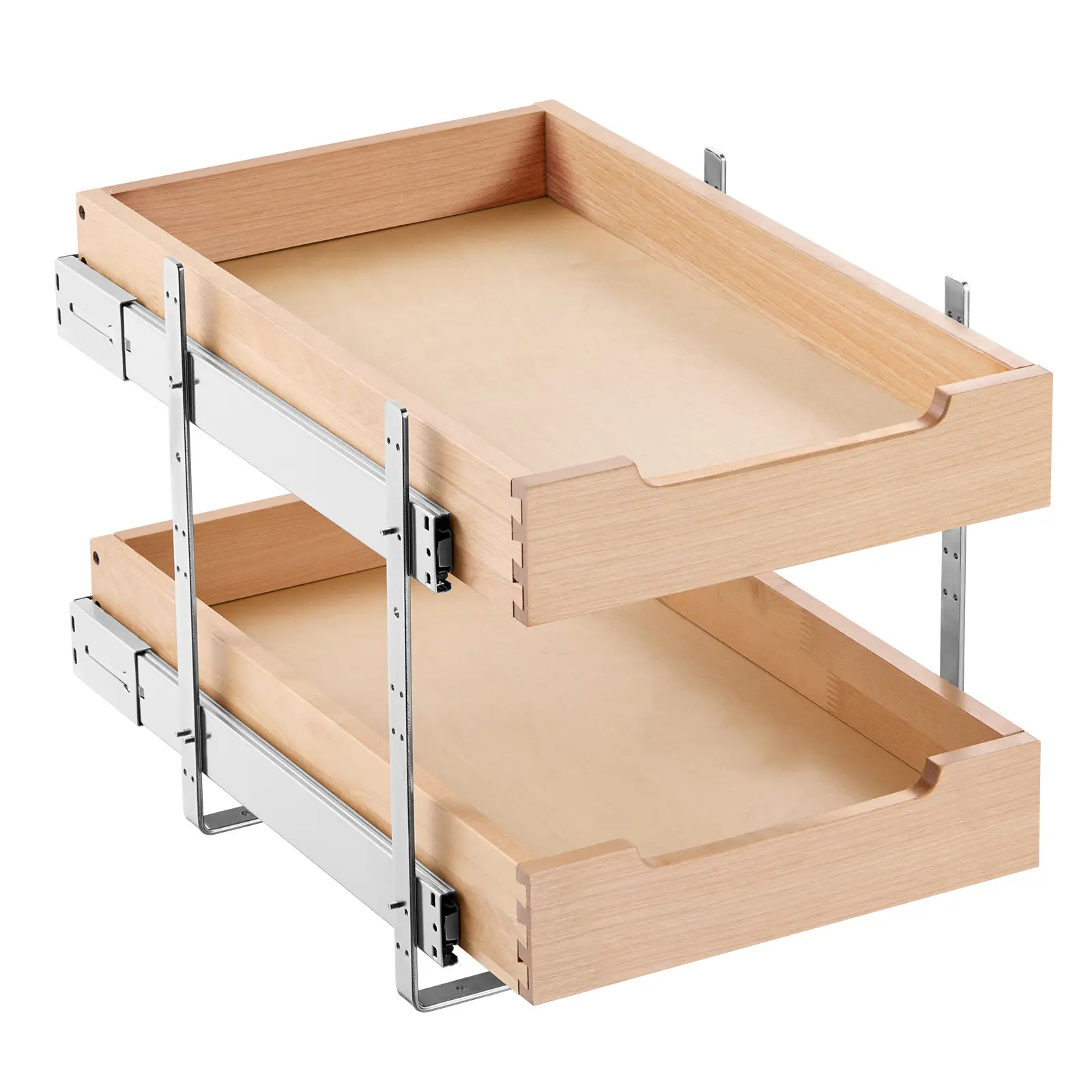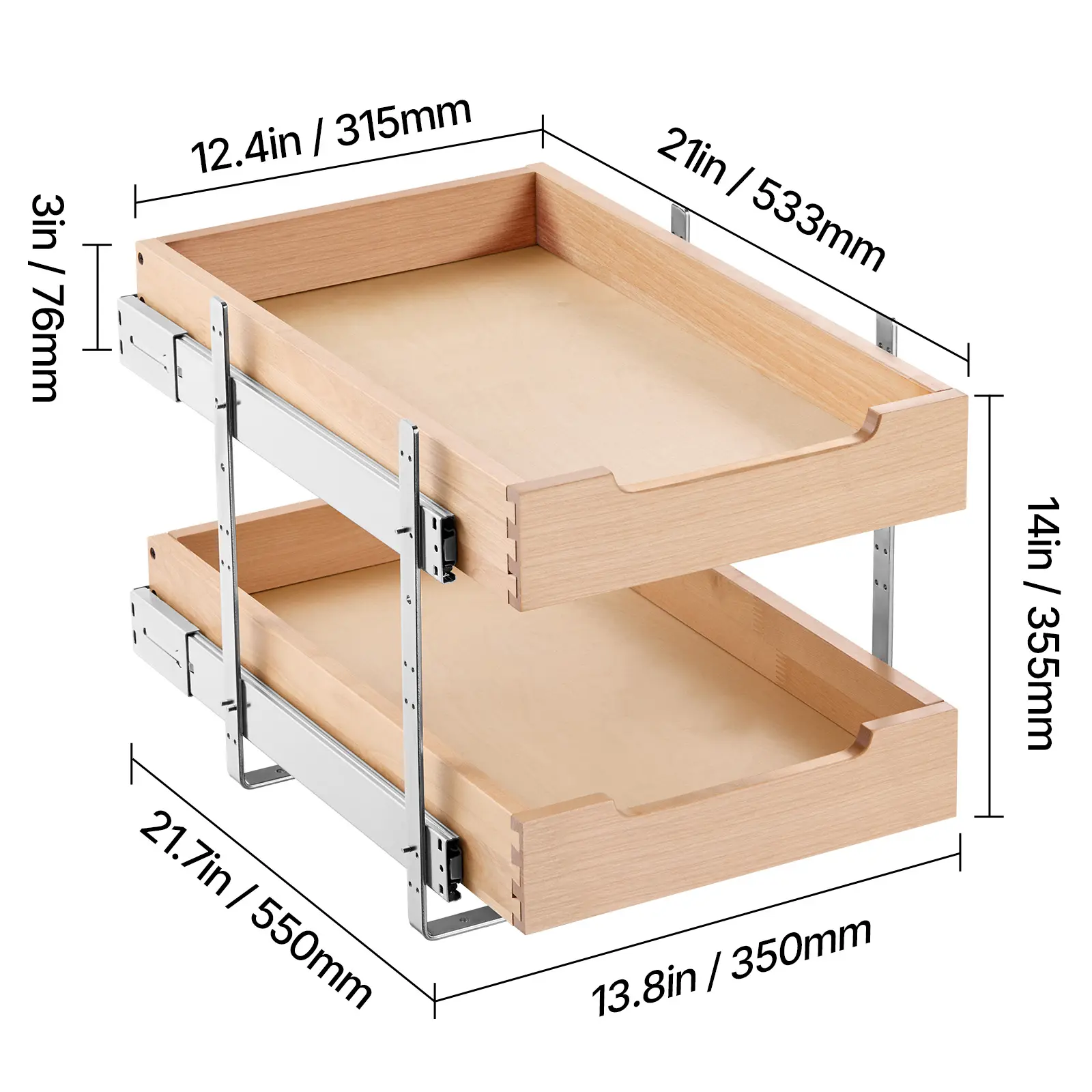 • 2-Tier Pull-Out Drawer: The 2-tier heavy duty sliding drawer's dimensions are: 315 x 533 x 76 mm / 12.4 x 21 x 3 inch, with an internal drawer height of 55 mm / 2.2 inch. Despite its compact size, it provides efficient storage capacity to help clear clutter from cabinets, making your life easier.