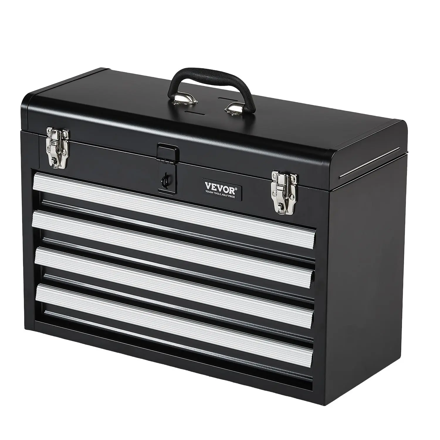 • Auto-locking for Enhanced Security: The steel tool box features an auto-locking system. Simply push the drawers in and close the top lid to lock it, avoiding accidental sliding and securing your tools. The heavy-duty metal latch keeps the top securely in place, while an additional lock hole allows you to add a lock for extra security, ensuring your valuable items are secure. (Note: To access the drawers, unlock by opening the top lid first.)