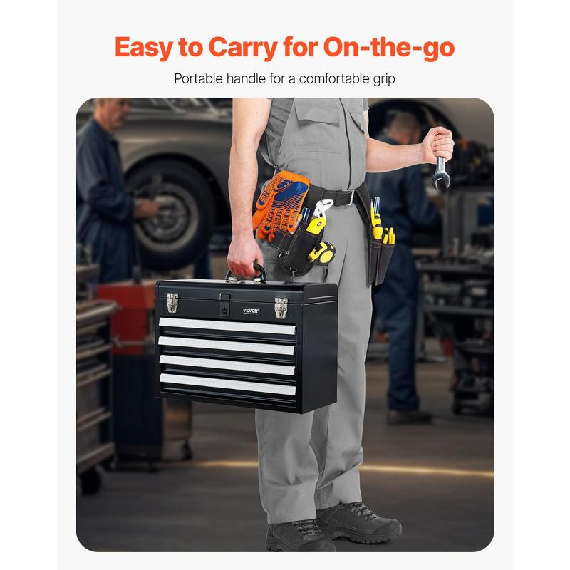 • Portable and Easy to Carry: With a convenient top handle, the drawer toolbox is easy to carry even when full of tools. The auto-locking system ensures your items stay secure during transport, avoiding any accidental spills and keeping you organized while on the move.
