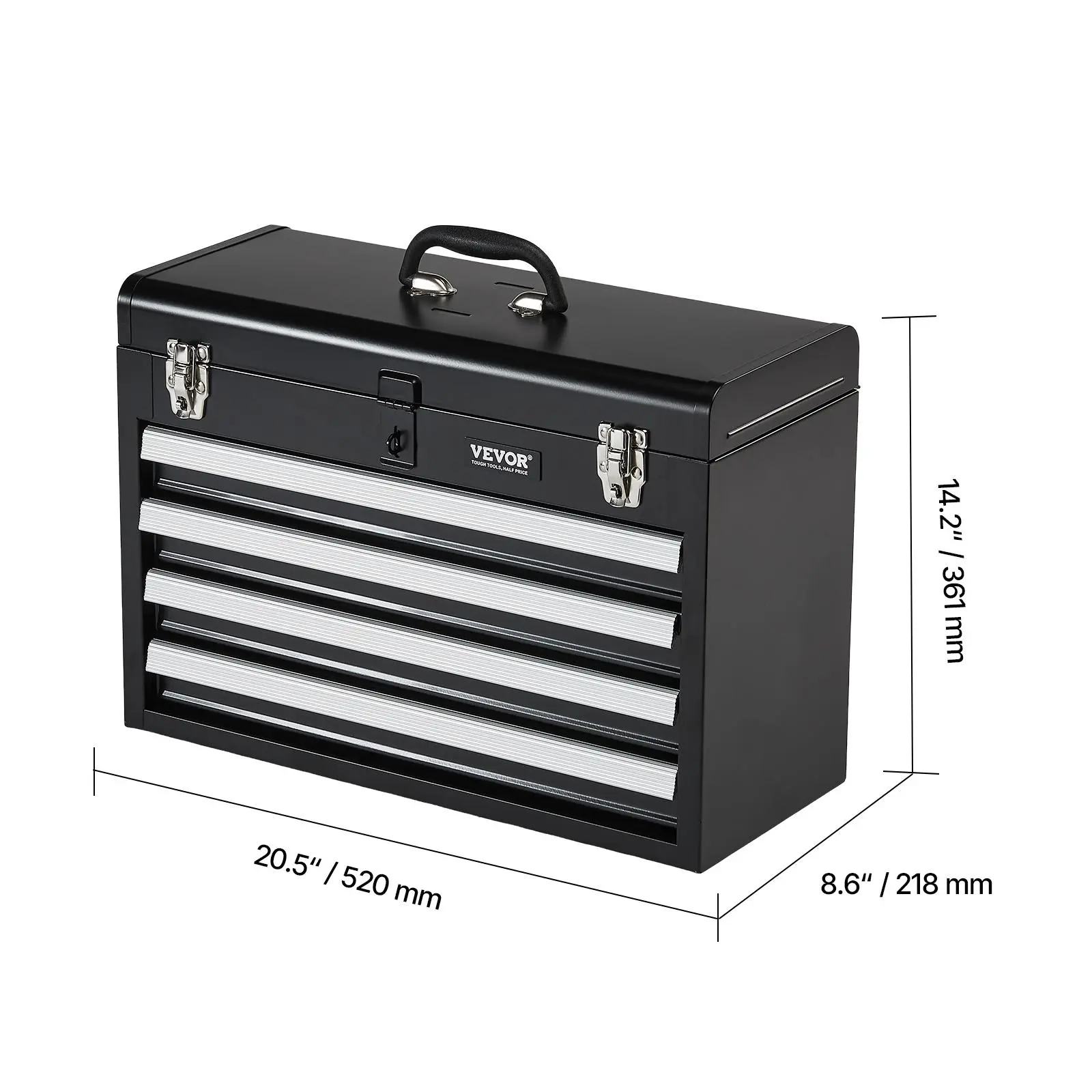 • Ample Storage Space: The portable metal tool box measures 20.5 x 8.6 x 14.2 inches and weighs 21.5 lbs, making it ideal for carrying tools while working on the go or storing them in your vehicle's trunk. It features 1 top box (19.9 x 8.2 x 2.1 inches) and 3 drawers (17.6 x 7.36 x 1.73 inches), with each layer supporting up to 15 lbs, providing plenty of storage space.