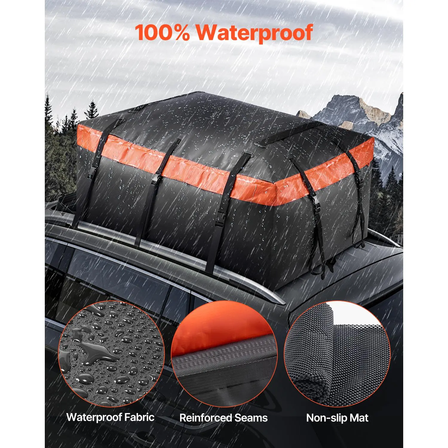 • Enhanced Durability: Crafted from 840D PVC material and featuring a waterproof zipper, our 100% waterproof car rooftop cargo carrier bag ensures your luggage are protected from rain, snow, or moisture, keeping them dry and in perfect condition throughout transportation.