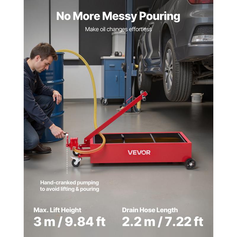 • Large 20-Gallon Capacity: The 20-gallon oil drain pan stores oil from multiple vehicles at once. A 2.2 m hose provides smooth, steady draining, making it ideal for shops, farms, and long work sessions