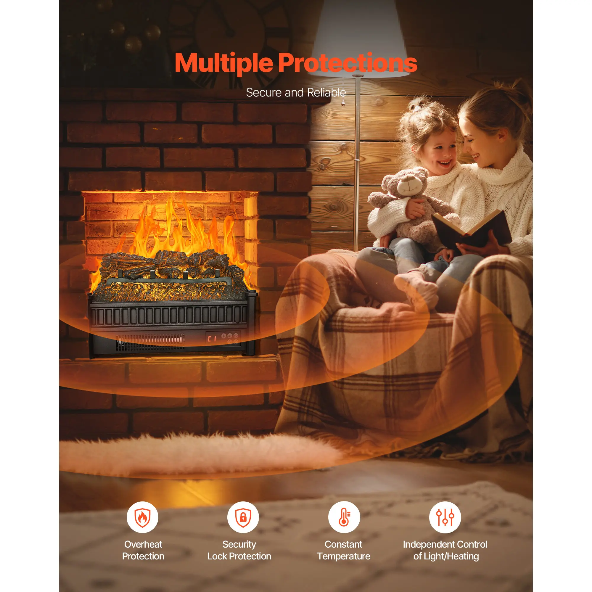 • 3D Realistic Flames: Creates a cozy ambiance with realistic flame effects. Unlike traditional fireplaces, no ash cleanup or fuel needed, making it more convenient to use