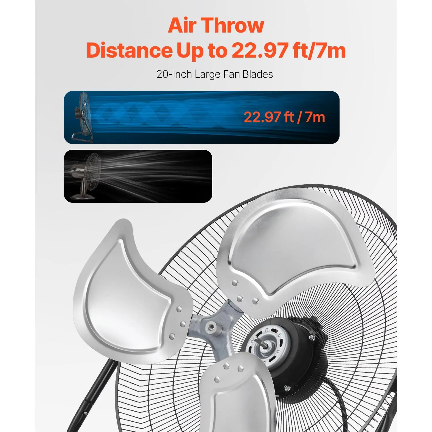 • Built-to-Last Structure: This heavy-duty industrial fan features a metal grill with a black powder rust-proof coating, ensuring durability. The fan’s 20-inch wide aluminum blades are robust and won’t easily break.