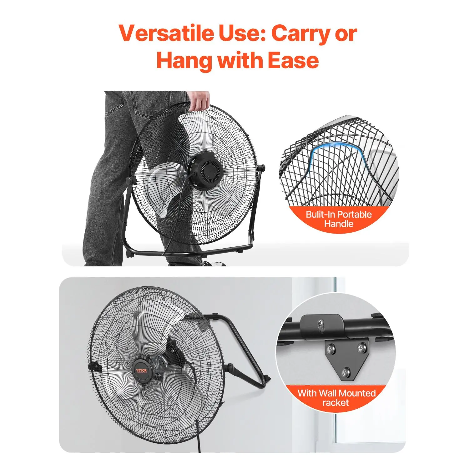 • Wall-Mountable Designed: This portable large fan comes with a wall-mount bracket, easily converting from a floor fan to a wall-mounted fan, versatile for both floor and wall use.