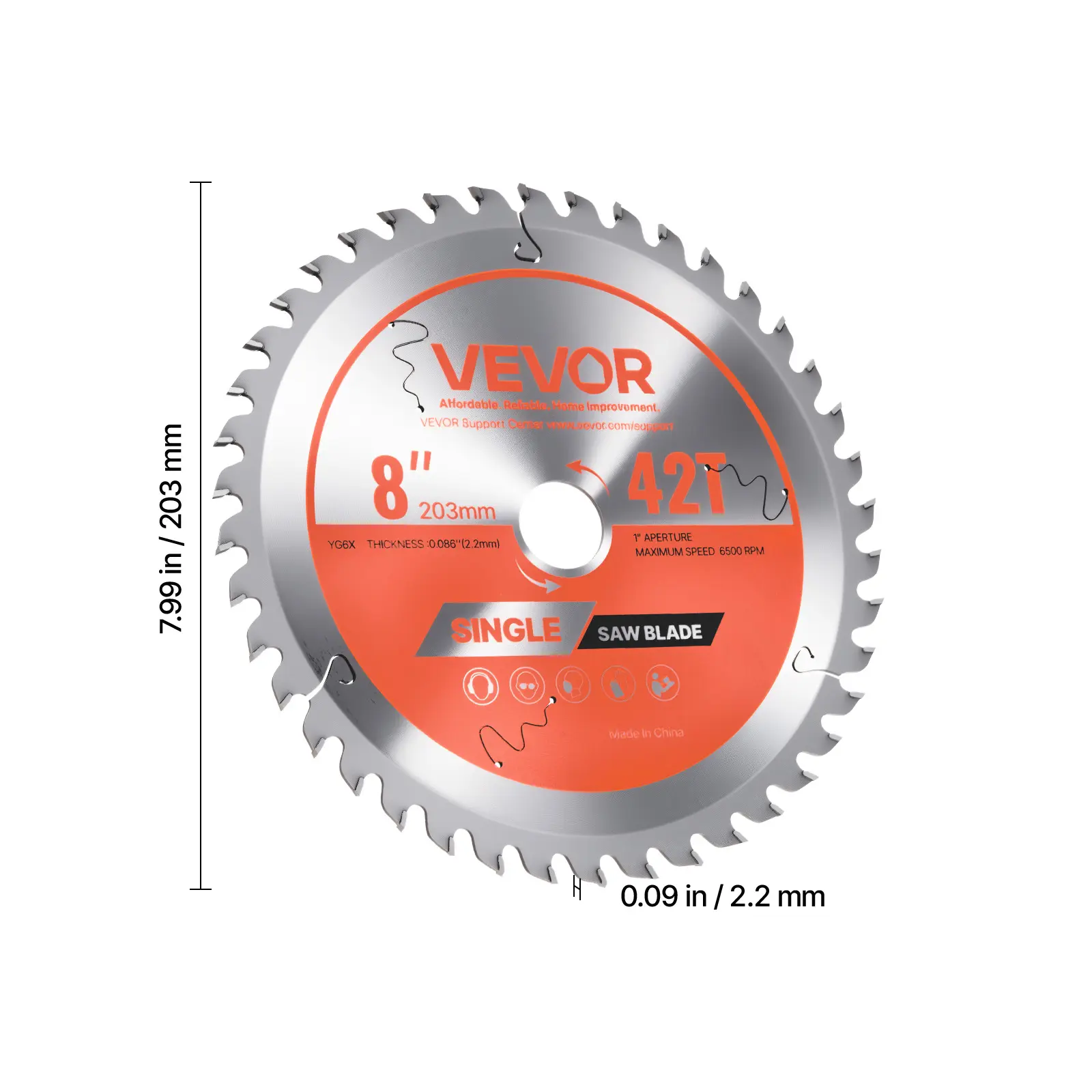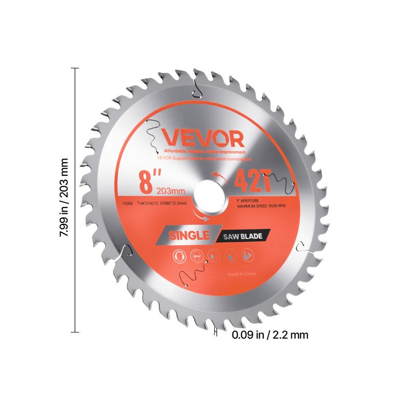 • Efficient Cutting Performance: This 8 inch circular saw blade handles a wide range of materials with ease. Equipped with 42 sharp teeth and a max speed of 6500 RPM, it ensures fast and precise cutting every time