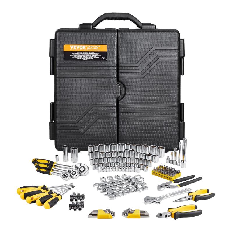 • Ultimate Compatibility: This 207-piece mechanics tool set includes SAE and metric sizes of 1/2", 3/8", and 1/4" drive sockets, ratchet handles, hex wrenches, extension bars, bits, screwdrivers and pliers, making it perfect for handling complex repair jobs.