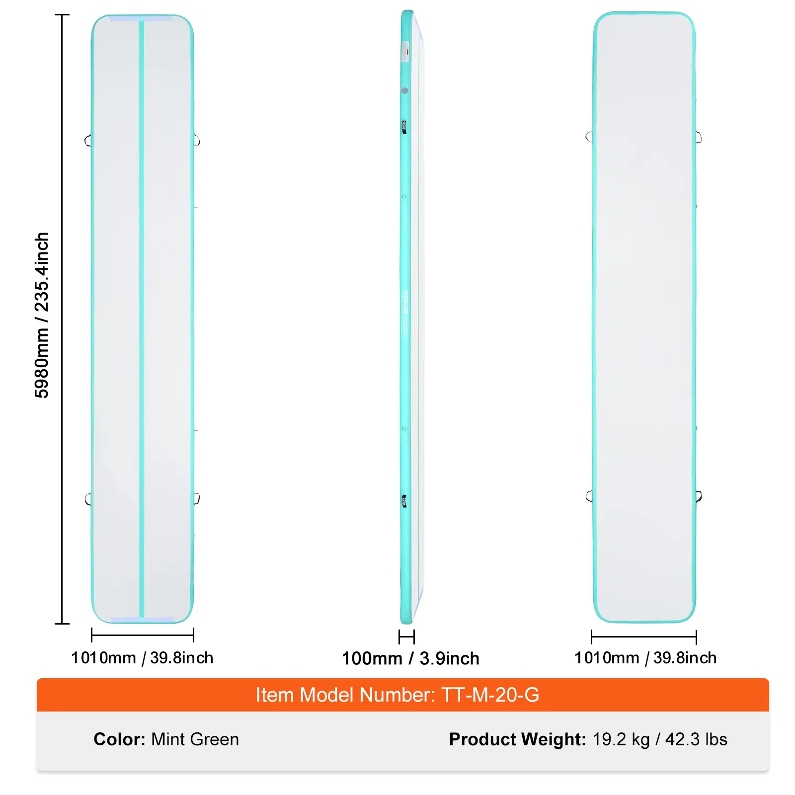 • Variety of Sizes and Colors: Offering air tumbling mats in lengths of 10 ft, 13 ft, 16 ft, and 20 ft to suit your specific needs. Available in multiple colors to add vibrancy to your training and lifestyle. The mat is versatile, suitable for tumbling, gymnastics, yoga, artistic activities, and can also be used on beaches, swimming pools, backyards, or lawns – just avoid sharp objects.