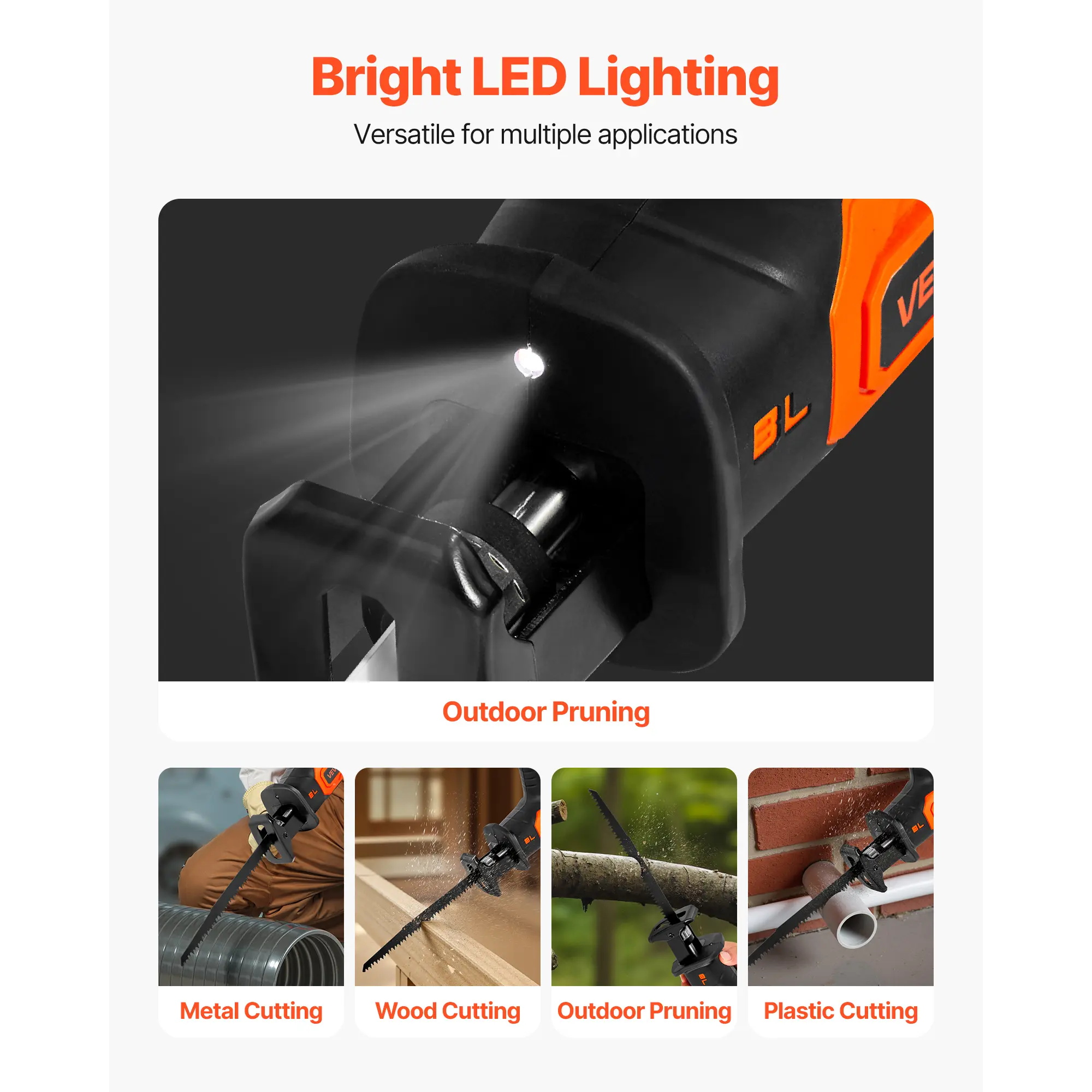 • Multi-Scene Ready: The cordless reciprocating saw kit tackles wood cutting, plastic cutting, metal cutting, and outdoor pruning with ease. Thanks to its deep-cut capacity, it handles everything from home DIY to demanding on-site tasks