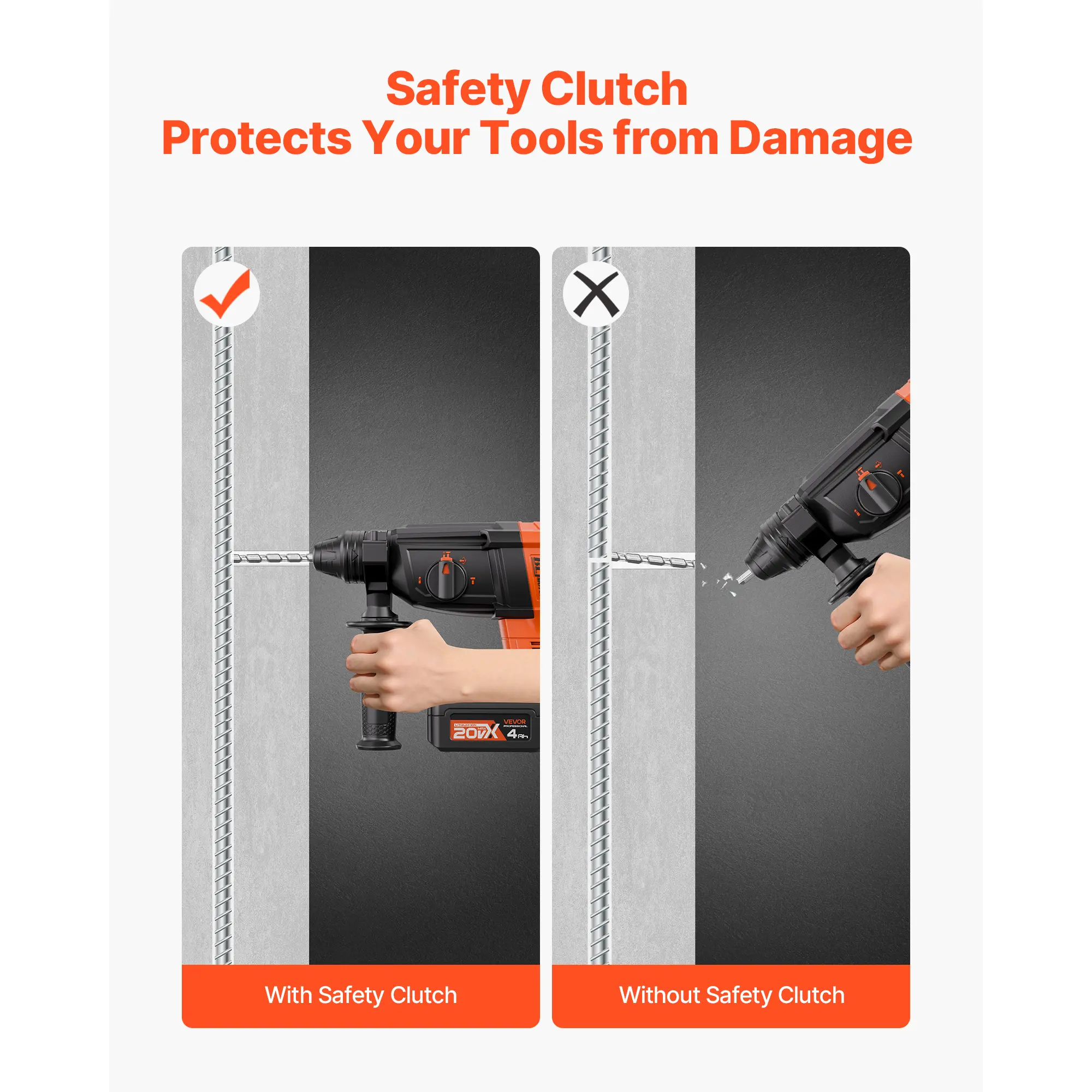 • High-Speed System: Equipped with a high-efficiency system, this hammer drills for concrete reaches up to 0–1200 RPM and a max impact rate of 0–5300 BPM. Smash through tough surfaces with ease—no job is too big