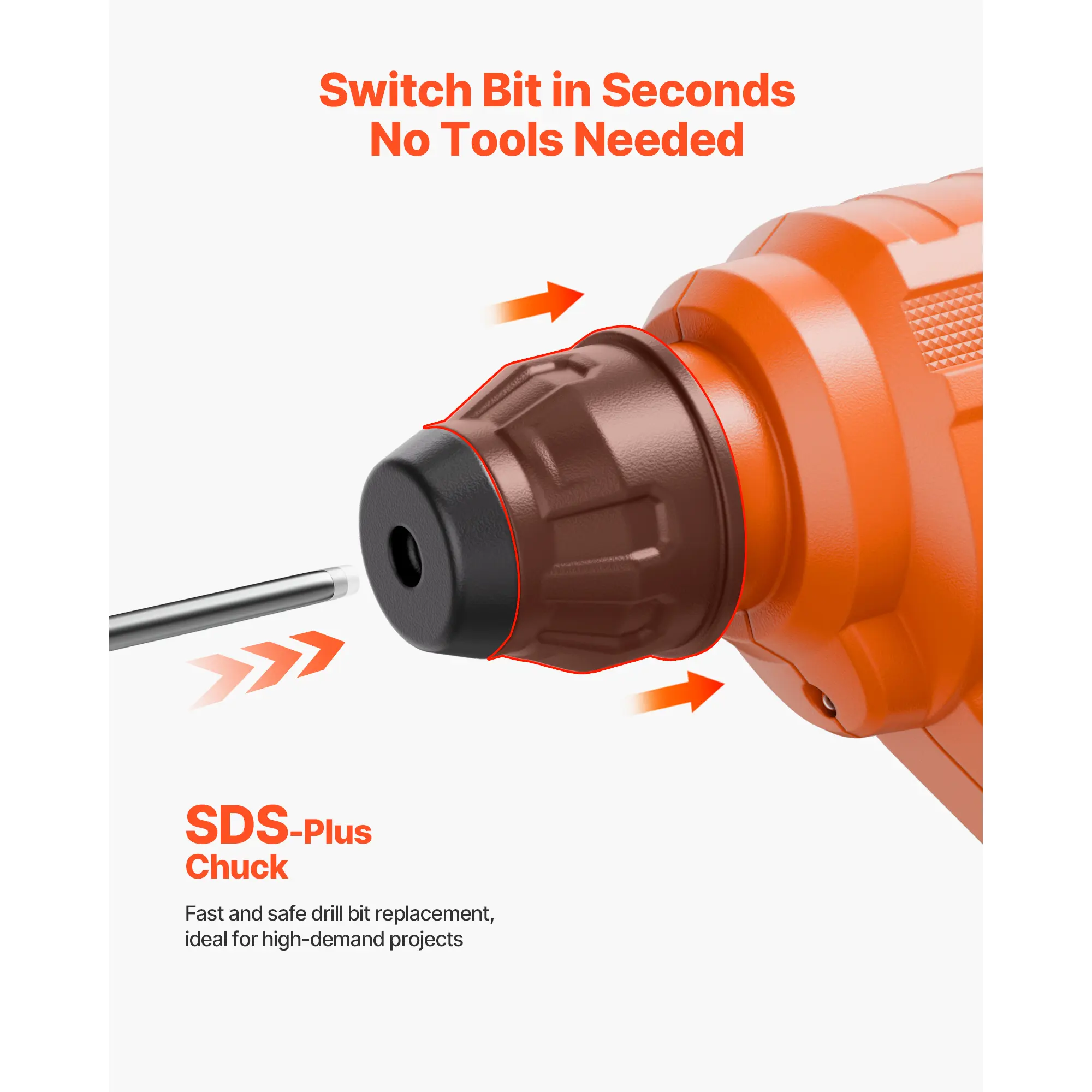 • Designed to Go Beyond: The SDS-Plus chuck allows for quick, secure bit changes so you can keep your project moving without interruption. The precision-engineered heat dissipation structure helps extend the electric power tool kit's lifespan. Get ready to work smarter! The reverse function ensures accurate bit starts and makes removing fasteners a breeze