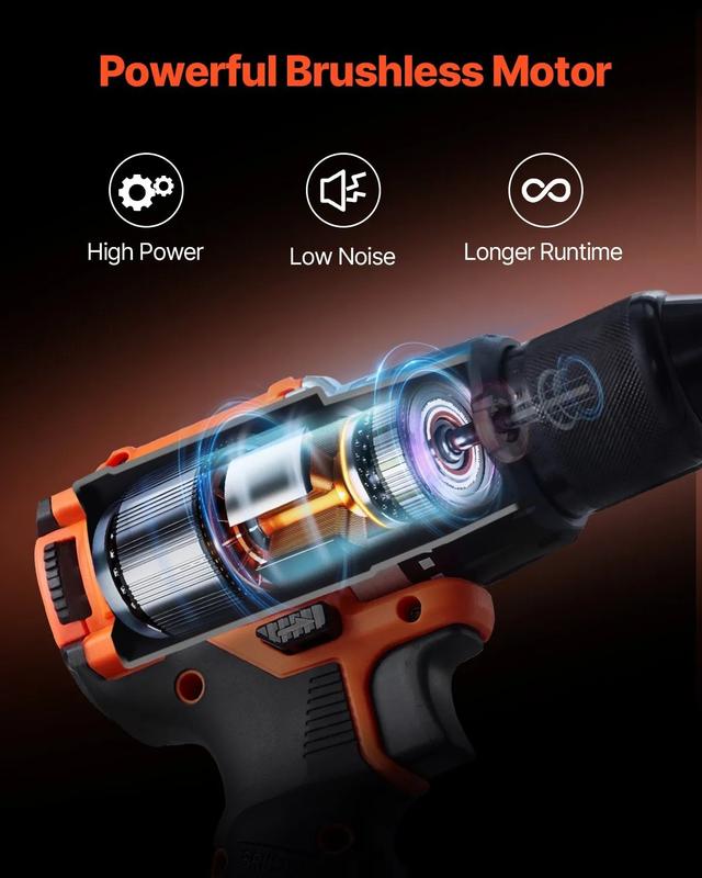 ·Brushless Motor: This cordless tool set features a brushless motor for higher efficiency, longer work service, and lower noise and vibration, enhancing the user experience. Its compact size and light weight make it easier to carry and use