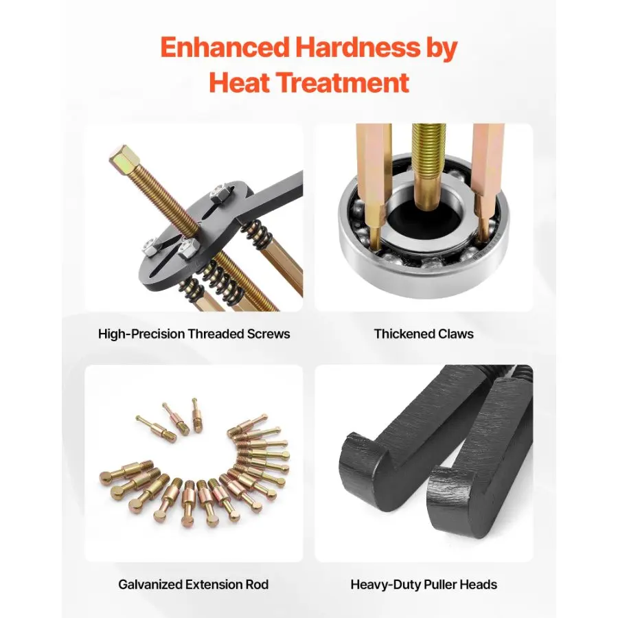 VEVOR 21 - in - 1 Bearing Puller Set, 21 PCS 3 - Jaw Hook Puller for Internal External Bearings and Bearing Without Inner Shaft, Multifunctional Bearing Removal Tool with Heavy Duty Portable Storage CaseVEVOR 36-in-1 Bearing Puller Set, 36 PCS 3-Jaw Hook Puller for Internal External Bearings and Bearing Without Inner Shaft, Multifunctional Bearing Removal Tool with Heavy Duty Portable Storage Case Screw Auxiliary Spacers Extended Easy-Grip Handle Zinc-Plated Coating Flexible