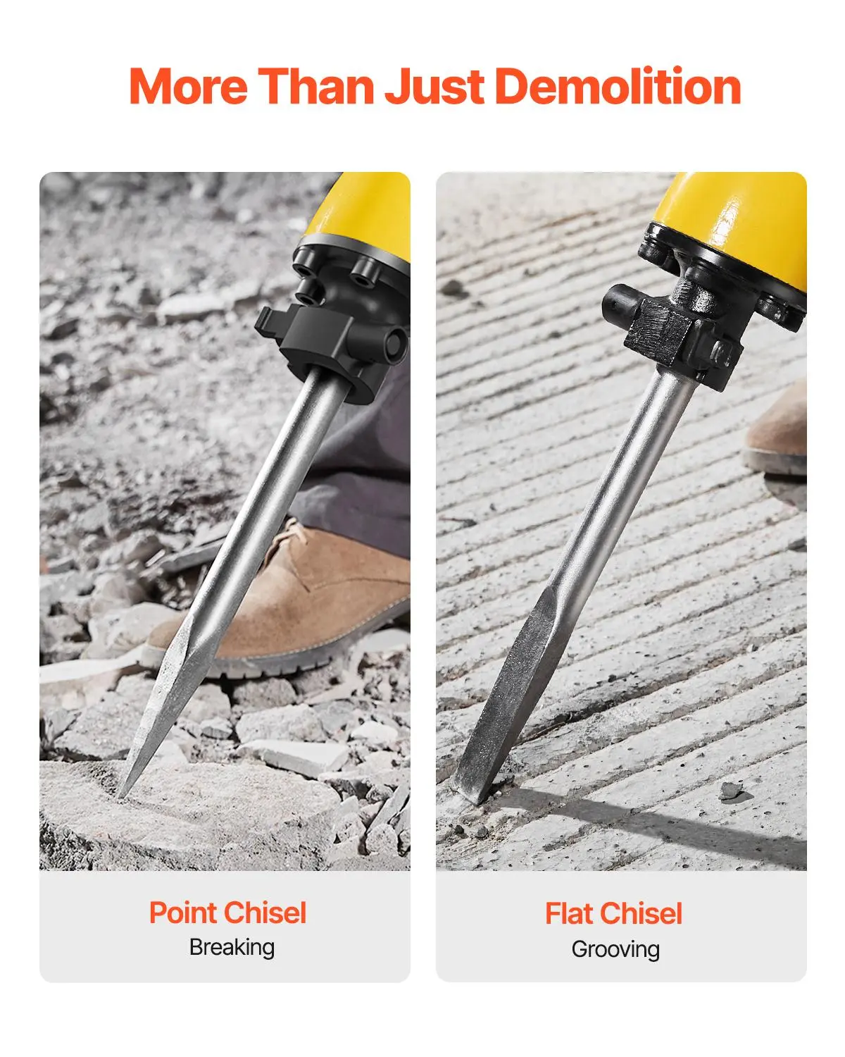 • Wide Range of Applications: The powerful demolition drills & hammers include 2 chisel bits(flat chisel and point chisel). It is perfect for demolition, trenching, chipping, and breaking holes in concrete, block, brick, and tile. It is also ideal for various applications such as pipeline, mechanical installation, drainage facilities construction, housing foundation removal, concrete slab, oil chimney, interior decoration, and much more!