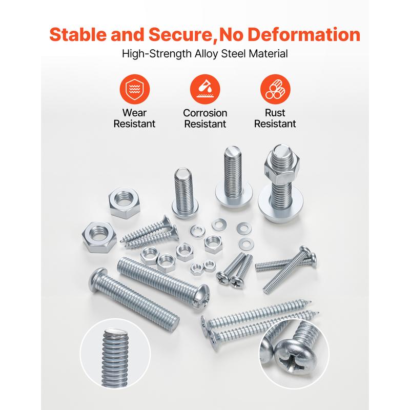 • 2250-Piece Multi-Specification Set: Includes 910 metric bolts (M3, M4, M5, M6, M8) and SAE bolts (#4, #6, #8, #10, #1/4, #3/8, #5/16, #6-32, #8-32, #10-24, #1/4-20, #5/16-18, #3/8-16). Perfect for repairs and replacements