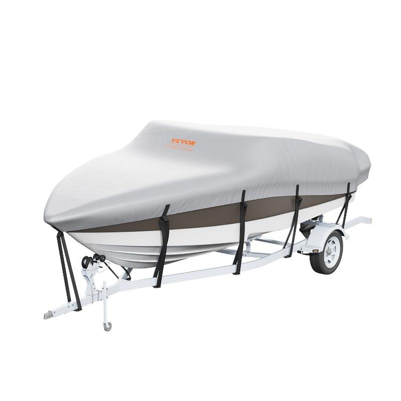 VEVOR Boat Cover, 23' - 24' Trailerable Waterproof Boat Cover, 600D Marine Grade PU Oxford, with Motor Cover and Buckle Straps, for V - Hull, Tri - Hull, Fish Ski Boat, Runabout, Bass Boat, GreyVEVOR Boat Cover, 14'-16' Trailerable Waterproof Boat Cover, 600D Marine Grade PU Oxford, with Motor Cover and Buckle Straps, for V-Hull, Tri-Hull, Fish Ski Boat, Runabout, Bass Boat, Grey Premium Boat Cover 600D Oxford Cloth Secure Fastening Quality Details Maintenance
